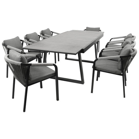 Aluminium Gartengarnitur Milano 7-teilig mit Tisch und 6 Stühlen silbergrau