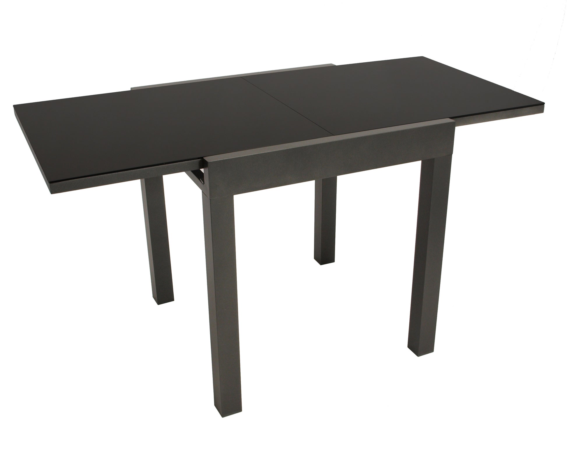 Table à rallonge de balcon ELBA 70/140x70cm, aluminium anthracite + verre noir