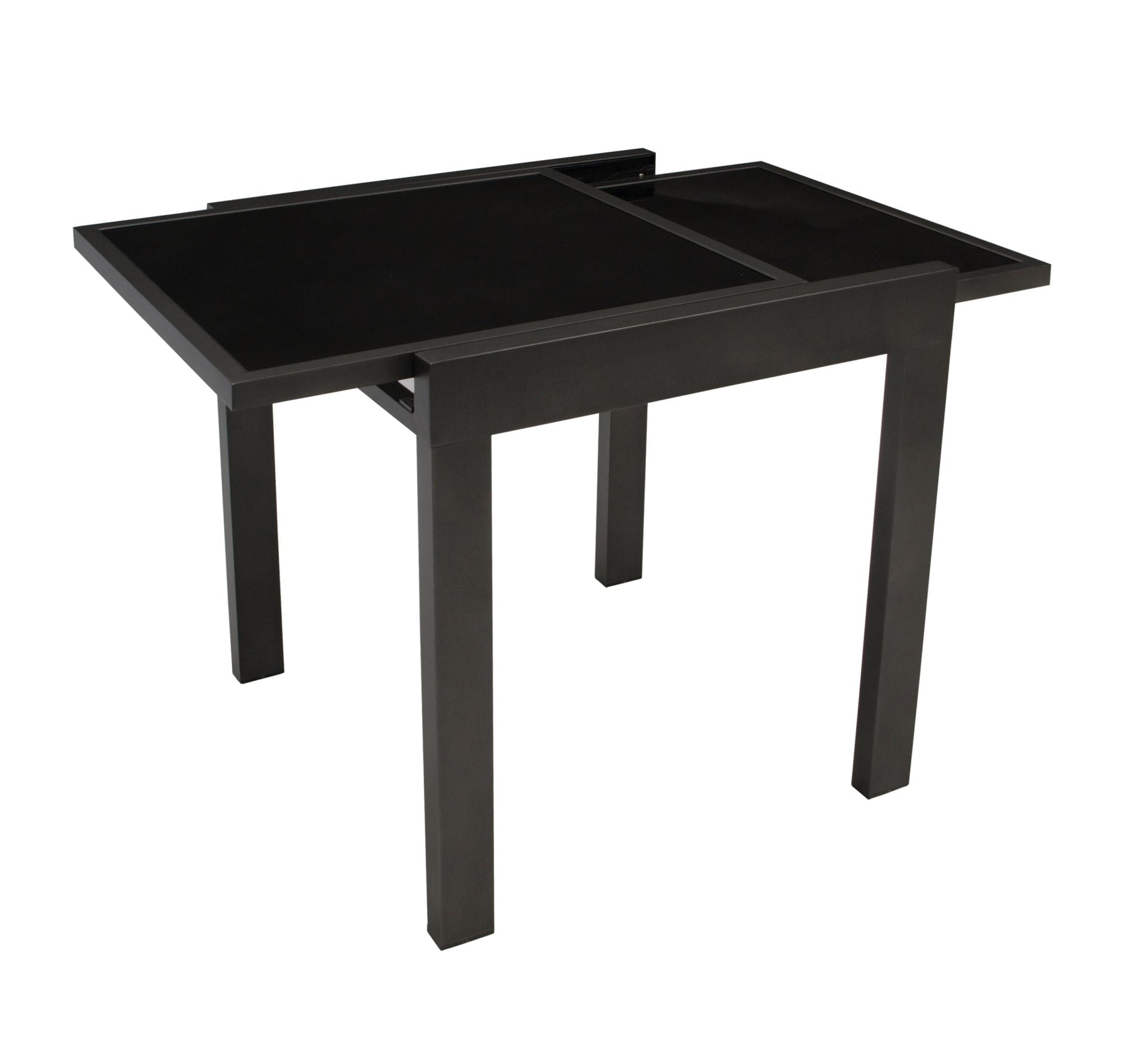 Table de balcon extensible TORINO 65/130x65cm, aluminium anthracite + verre noir