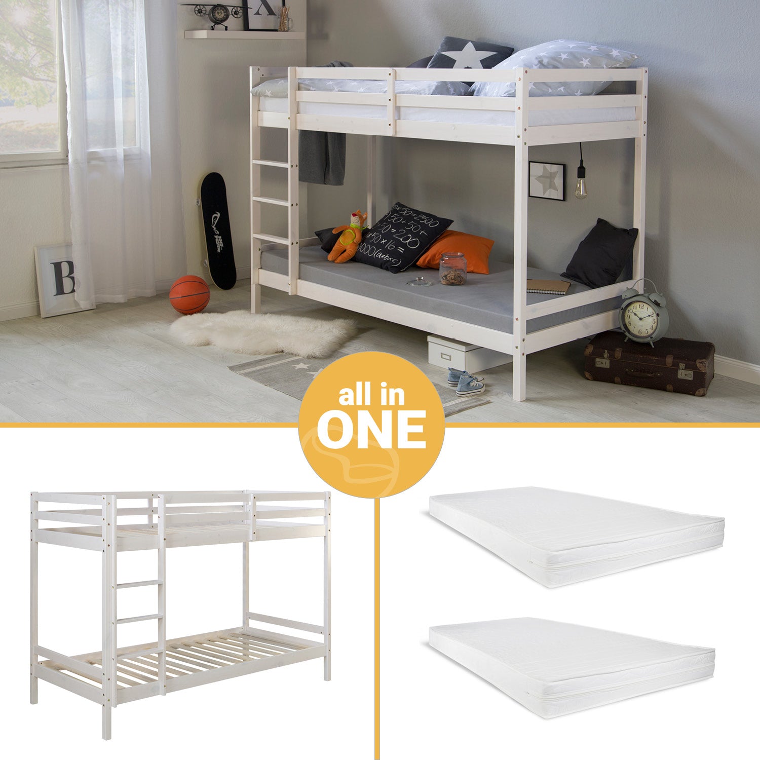 Etagenbett mit Matratzen Doppelstockbett 90x200 cm Hochbett Stockbett Kinderbett