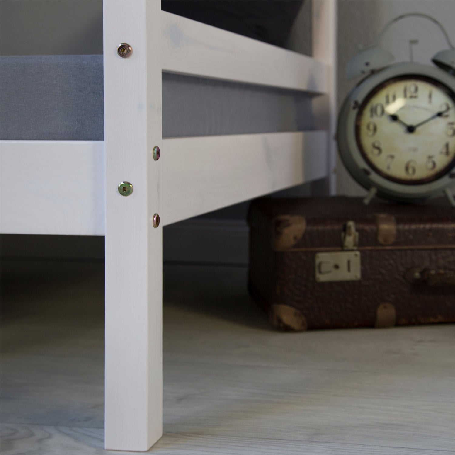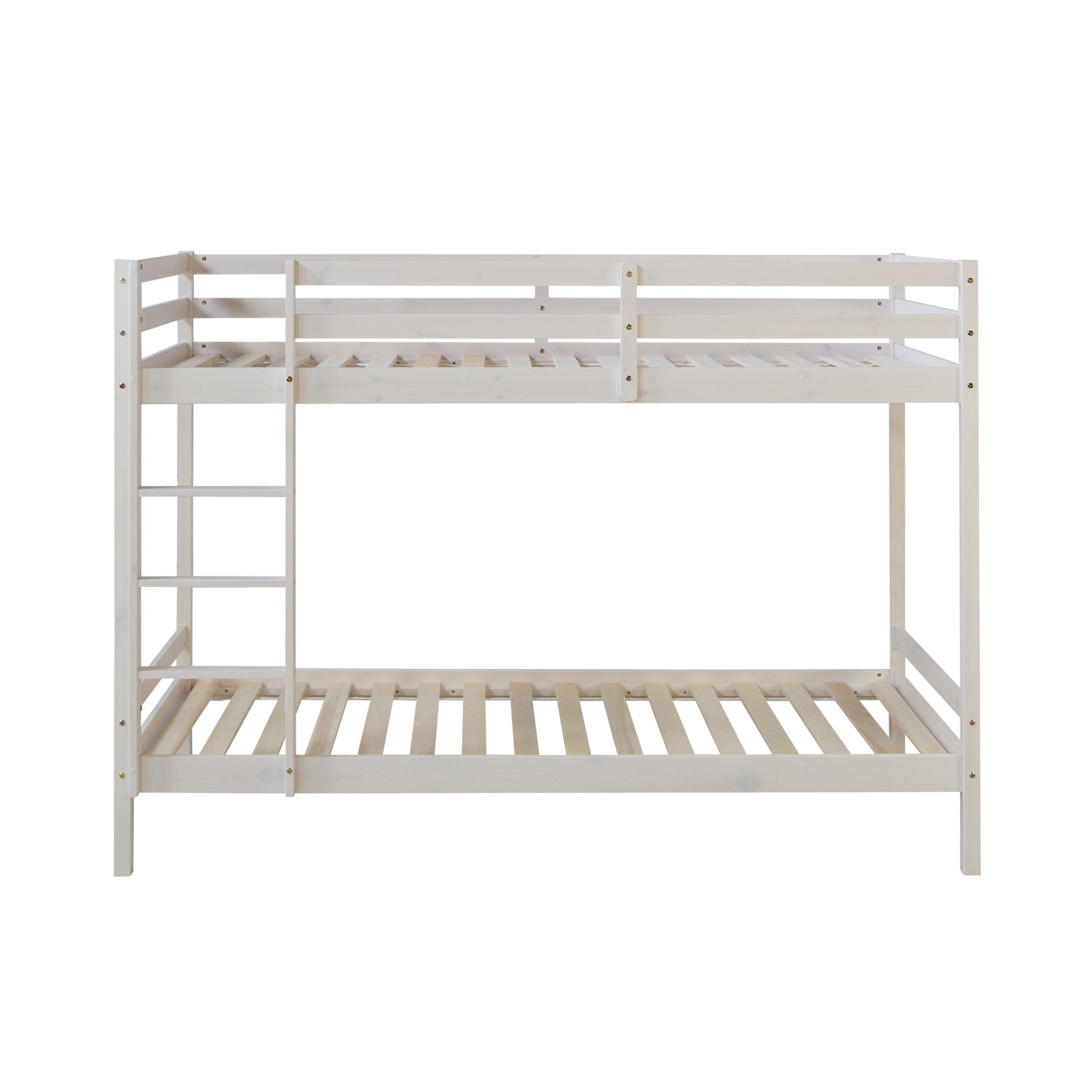 Dieses klassische Etagenbett aus massivem Holz bietet eine platzsparende und praktische Schlaflösung für Kinder-, Jugend- oder Gästezimmer. Gefertigt aus hochwertigem Holz, zeichnet sich das Bett durch Stabilität, Langlebigkeit und ein zeitloses Design aus. Die weiße Lackierung verleiht dem Bett eine moderne Optik, die sich harmonisch in verschiedene Einrichtungsstile einfügt.