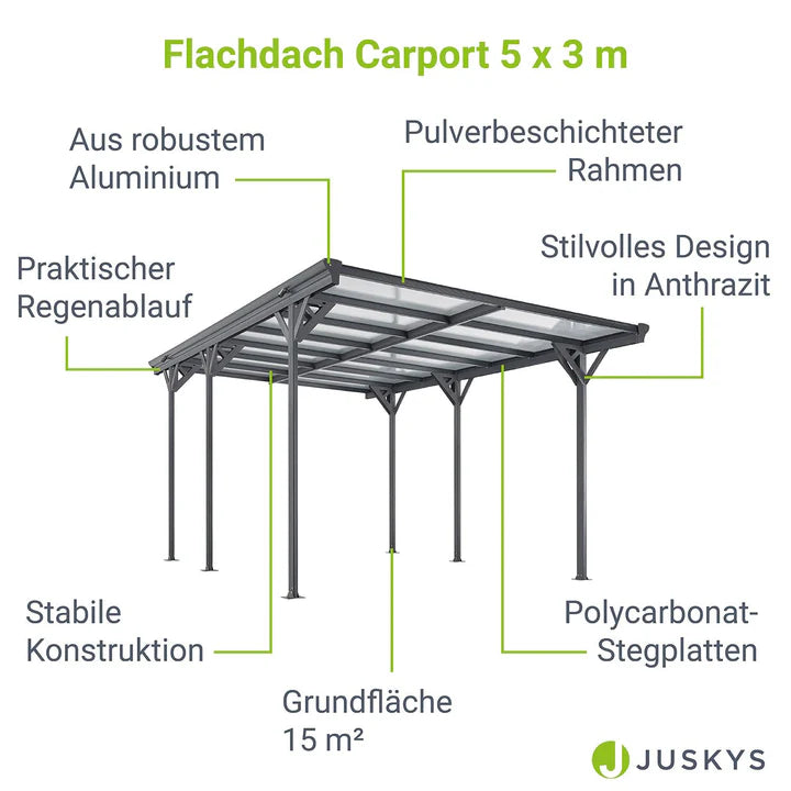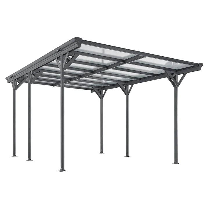 Abri de voiture à toit plat 5 x 3 m en gris foncé