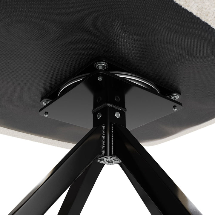 Der Stuhl lässt sich komplett um die eigene Achse drehen – ideal für offene Räume und mehr Bewegungsfreiheit am Tisch.