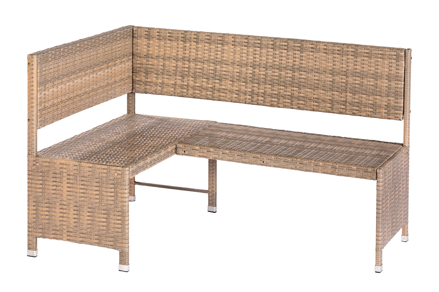 Banquette d'angle BREGENZ 148x100cm, acier + polyrotin, gris-beige