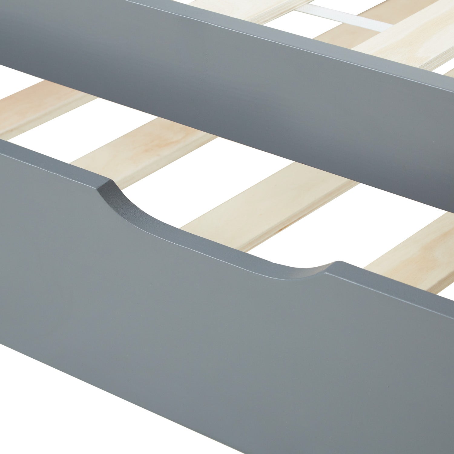 Stabilität trifft auf modernes Design - Das massive Holzgestell sorgt für einen stabilen Stand und lange Haltbarkeit. Die moderne graue Lackierung passt sich jedem Einrichtungsstil an von minimalistisch bis verspielt. Die klaren Linien und die funktionale Form machen dieses Multifunktionsbett zu einem echten Blickfang in Deinem Schlafzimmer.