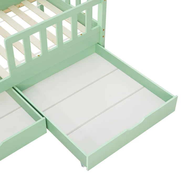 Lit enfant Marli 80 x 160 cm avec coffre de lit et sommier à lattes menthe