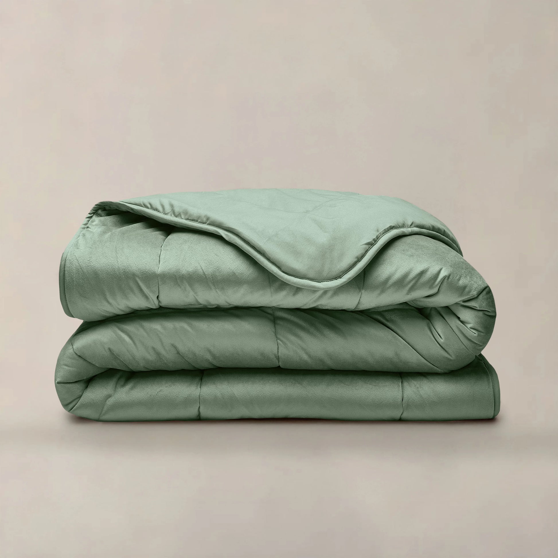 Die Oberschicht aus 100 % Samt fühlt sich wunderbar weich an und sorgt in kalten Nächten für ein warmes, umhüllendes Gefühl. Die Unterseite aus 100 % Mikrofaser ist leicht und kühlend – ideal für wärmeres Wetter. So genießen Sie das ganze Jahr über ein optimales Schlafklima, ohne Ihre Bettdecke wechseln zu müssen.
