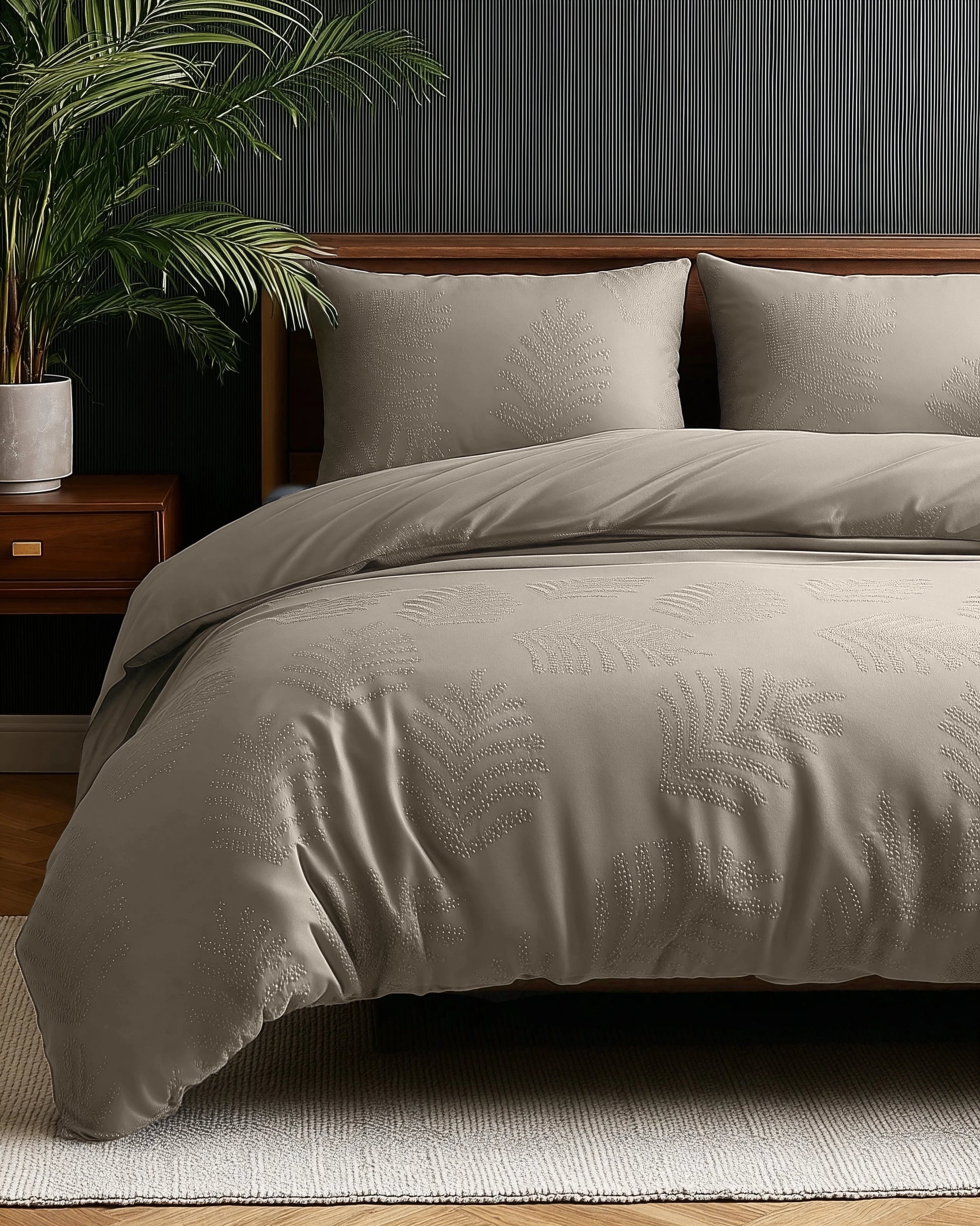 Leaves 3D Bettbezug 140x220 cm Taupe/Grau