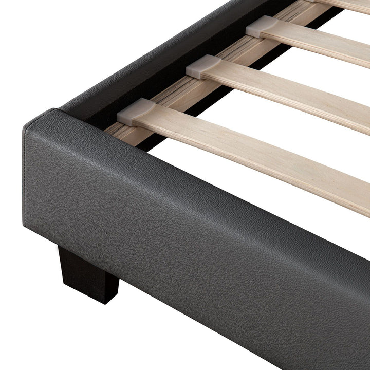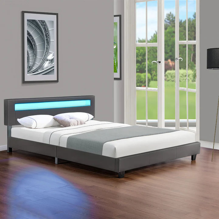 Le cadre de lit est fabriqué en bois MDF durable et possède un rembourrage doux. Il impressionne par sa finition solide et son montage facile. La housse en cuir synthétique facile d'entretien est très confortable et invite à la détente. Il peut être facilement nettoyé avec un chiffon humide.