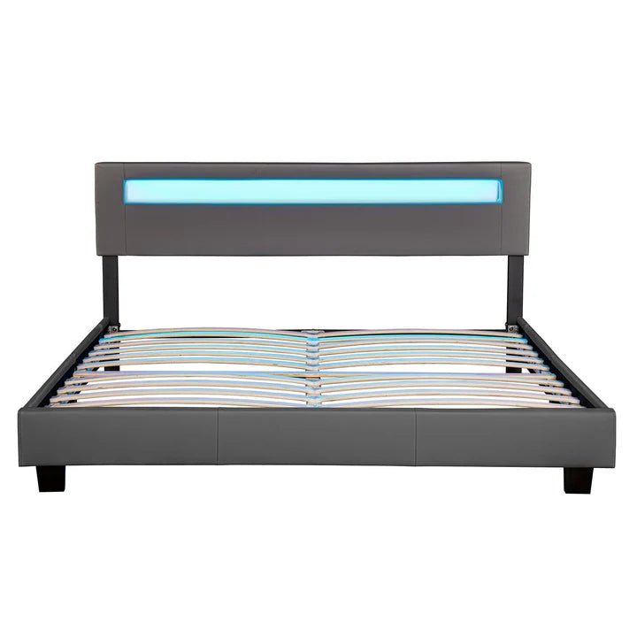 L'accroche-regard du lit en simili cuir est la tête de lit réglable en hauteur avec éclairage LED intégré. Avec une télécommande, vous pouvez choisir entre 16 couleurs de lumière et niveaux de luminosité différents. Détendez-vous dans l'ambiance atmosphérique et l'éclairage indirect tout en vous adossant à la tête de lit confortable.