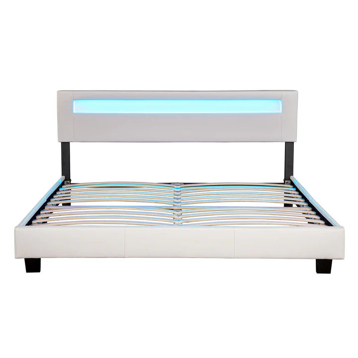 Lit tapissé LED Paris 180 x 200 cm sommier à lattes blanc