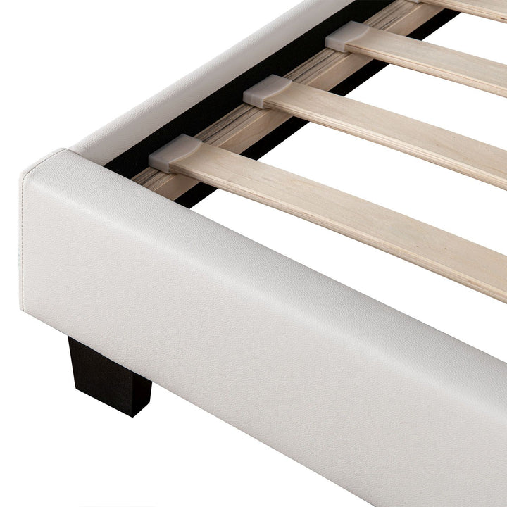 Le cadre de lit est fabriqué en bois MDF durable et possède un rembourrage doux. Il impressionne par sa finition solide et son montage facile. La housse en cuir synthétique facile d'entretien est très confortable et invite à la détente. Il peut être facilement nettoyé avec un chiffon humide.