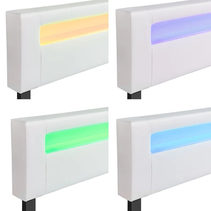 L'accroche-regard du lit en simili cuir est la tête de lit réglable en hauteur avec éclairage LED intégré. Avec une télécommande, vous pouvez choisir entre 16 couleurs de lumière et niveaux de luminosité différents. Détendez-vous dans l'ambiance atmosphérique et l'éclairage indirect tout en vous adossant à la tête de lit confortable.