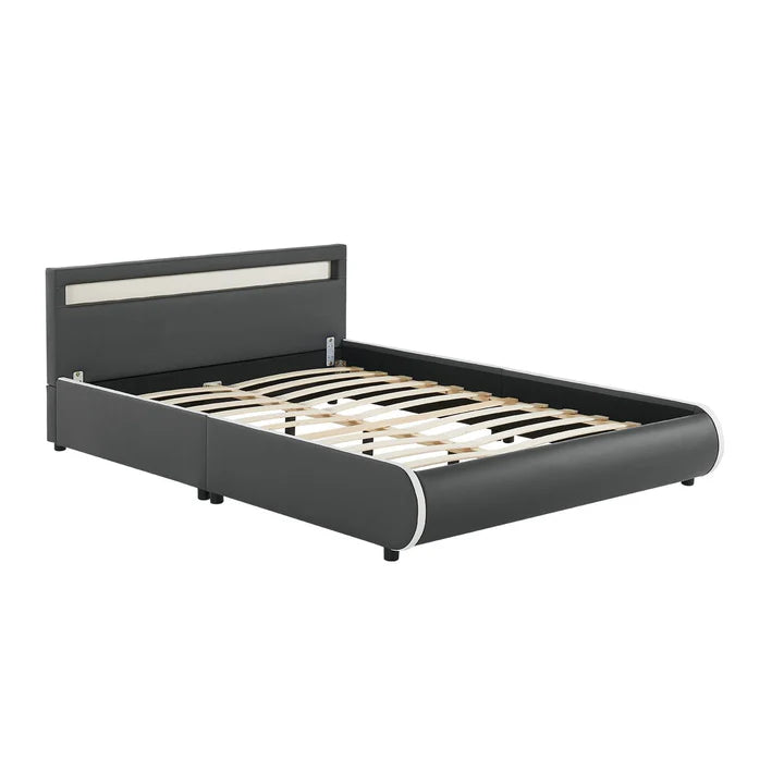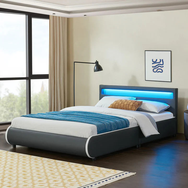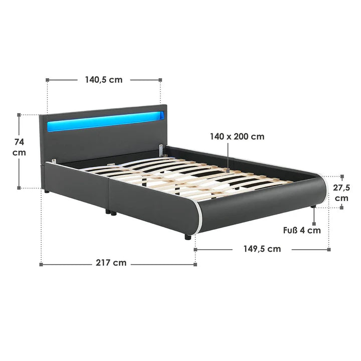 Lit rembourré LED Sevilla 140 x 200 cm sommier à lattes gris foncé