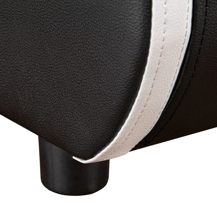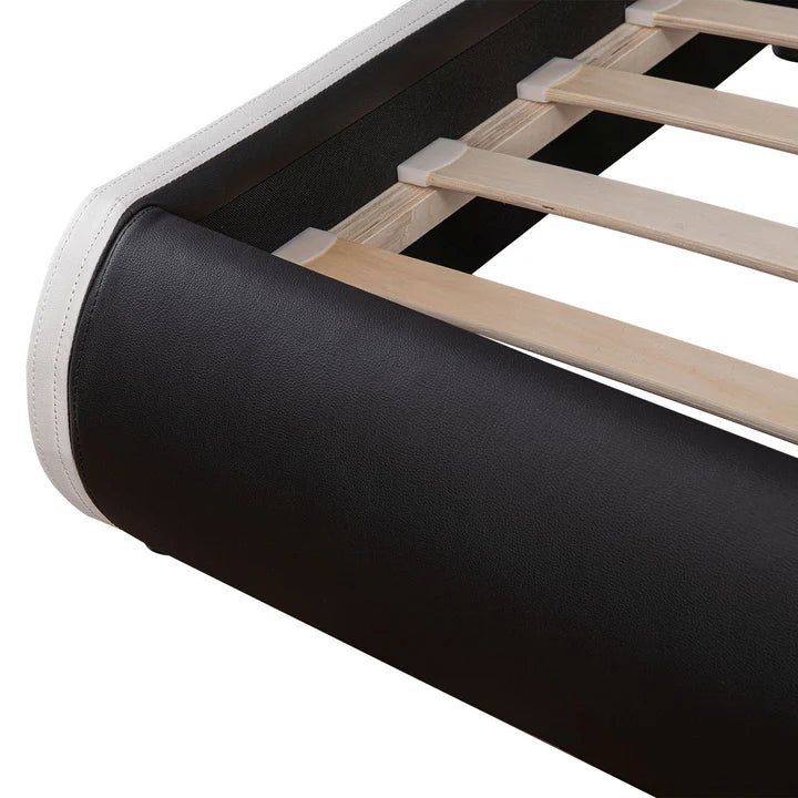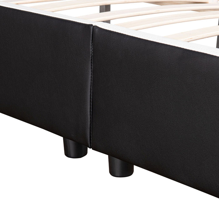 Le cadre de lit de 189,5 × 217 cm en bois MDF vous soutient de manière fiable pendant votre sommeil bien mérité. Il est extrêmement durable, facile à assembler et également légèrement rembourré. La housse en cuir synthétique résistant se nettoie facilement avec un chiffon humide.