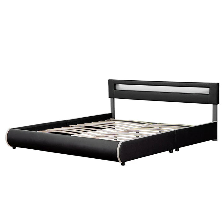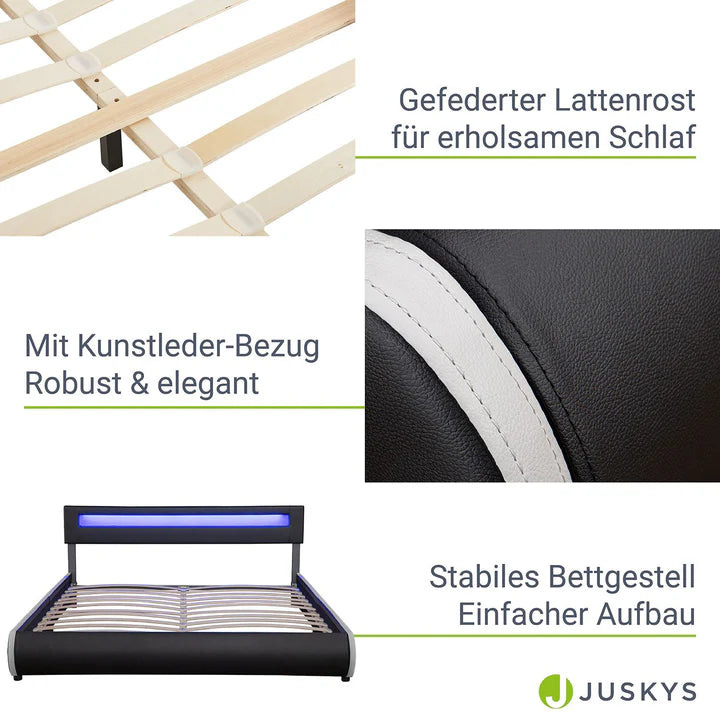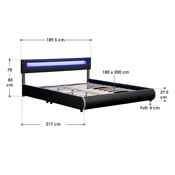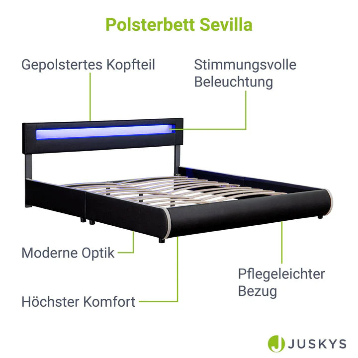 Lit rembourré LED Sevilla 180 x 200 cm sommier à lattes noir