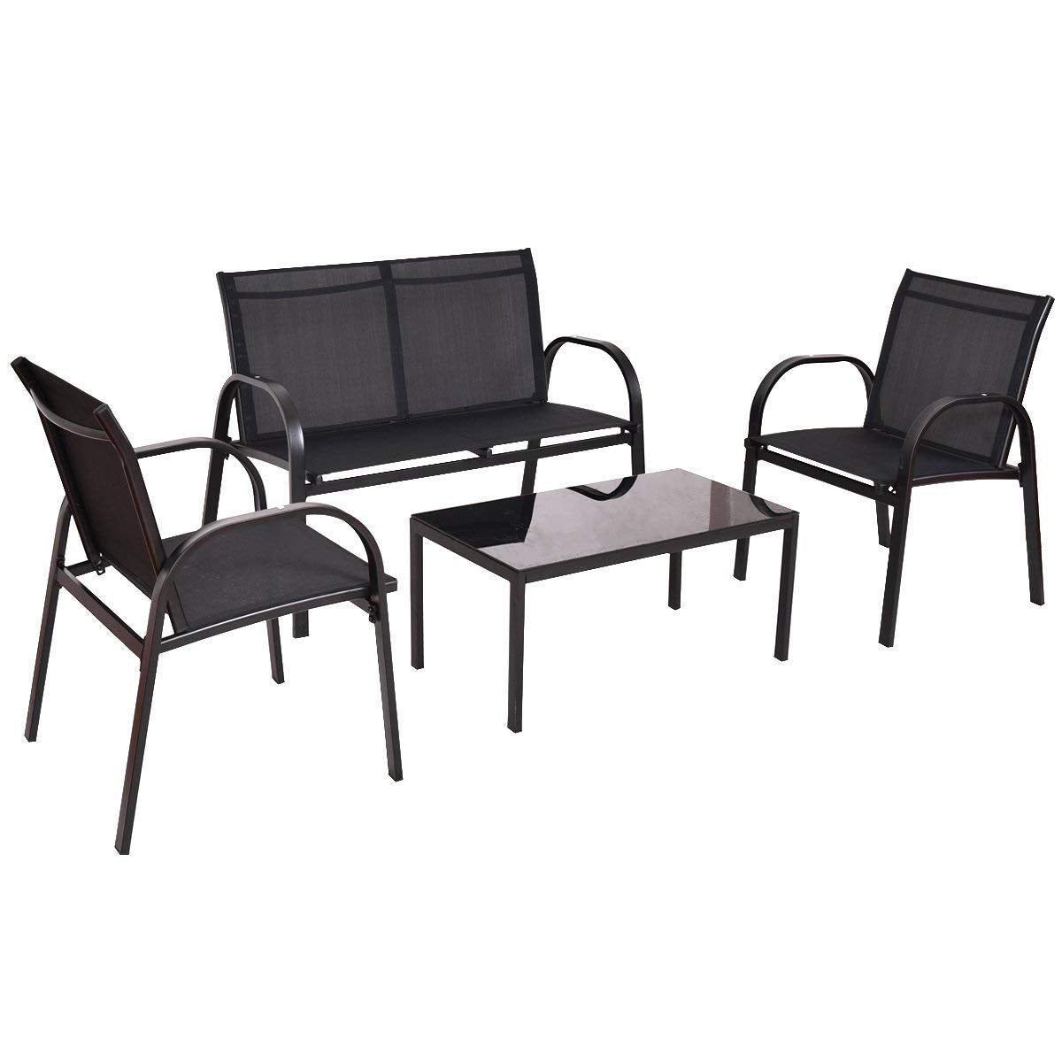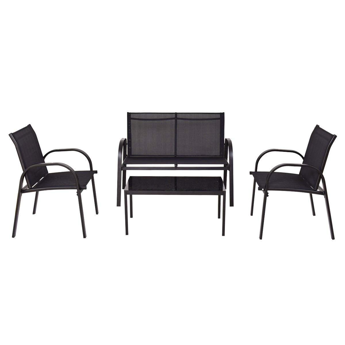ARONA Ensemble de salon 4 pièces, métal + tissu synthétique, noir
