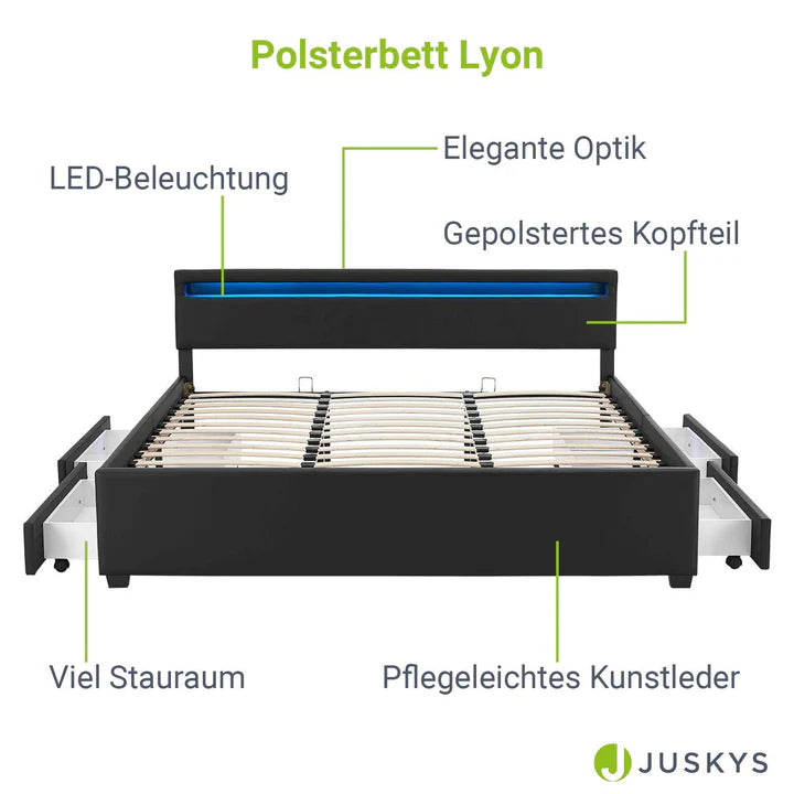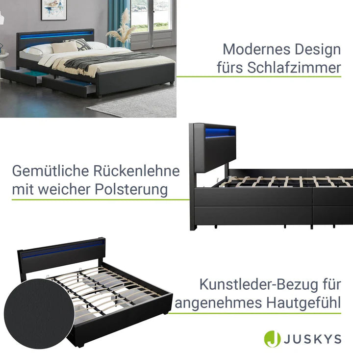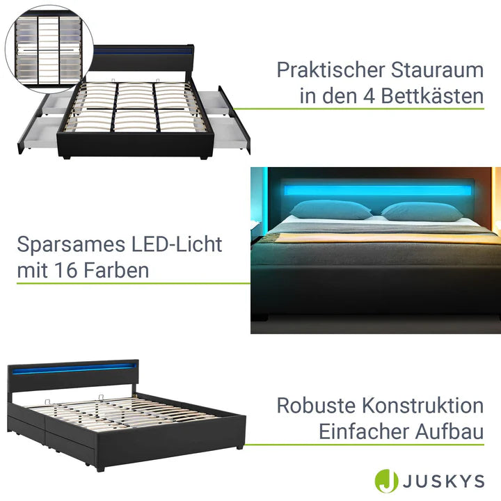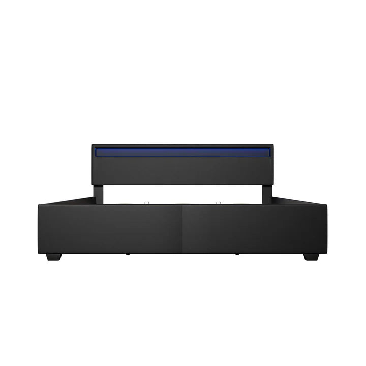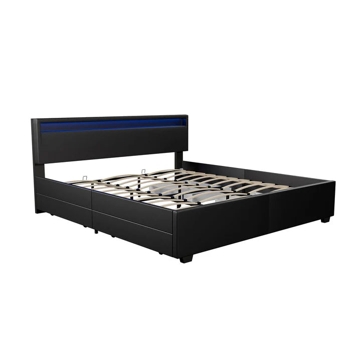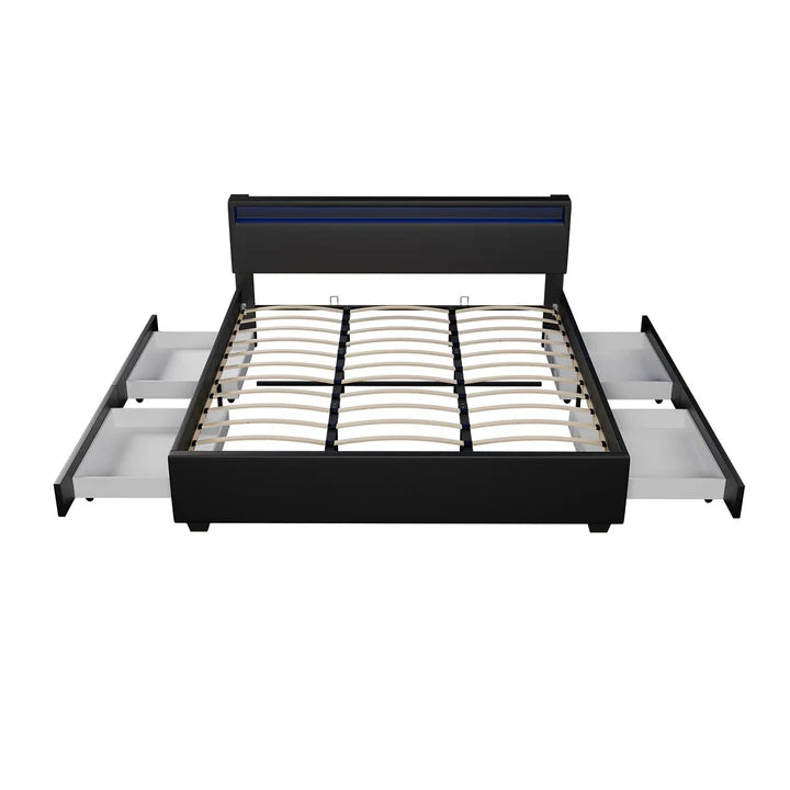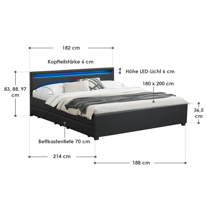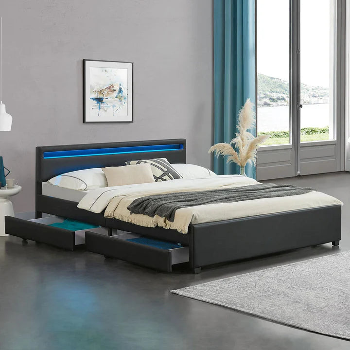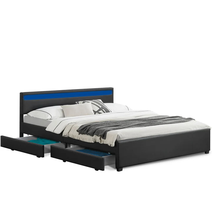 Cadre de lit avec coffres de lit, éclairage LED et sommier à lattes