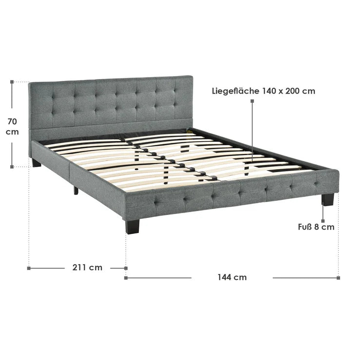 Avec notre confortable lit rembourré Manresa 140 x 200 cm en tissu doux, vous créez une atmosphère élégante et de bien-être dans votre chambre. L'aspect simple et le rembourrage agréable sont invitants et vous offrent de beaux rêves et un sommeil réparateur. Le lit intemporel et moderne impressionne non seulement par son grand confort, mais aussi par sa grande stabilité avec une barre centrale sécurisée et des pieds de support supplémentaires. Blottissez-vous dans votre oreiller et vivez des nuits merveilleusement détendues dans une atmosphère de bien-être. Vous commencez ainsi votre journée reposé et avec une énergie nouvelle.