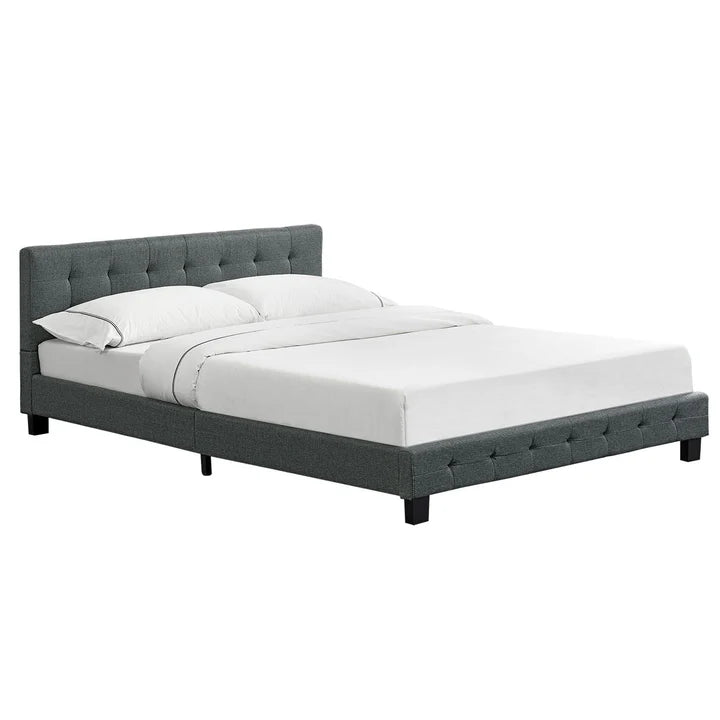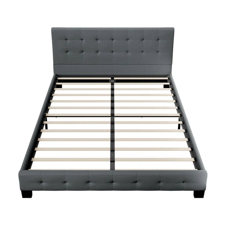 Grâce à son look intemporel, le lit rembourré s'intègre sans effort dans n'importe quelle chambre. La combinaison du tissu gris moderne et de l'aspect confortable du revêtement crée une atmosphère de bien-être qui invite au rêve et est extrêmement élégante.