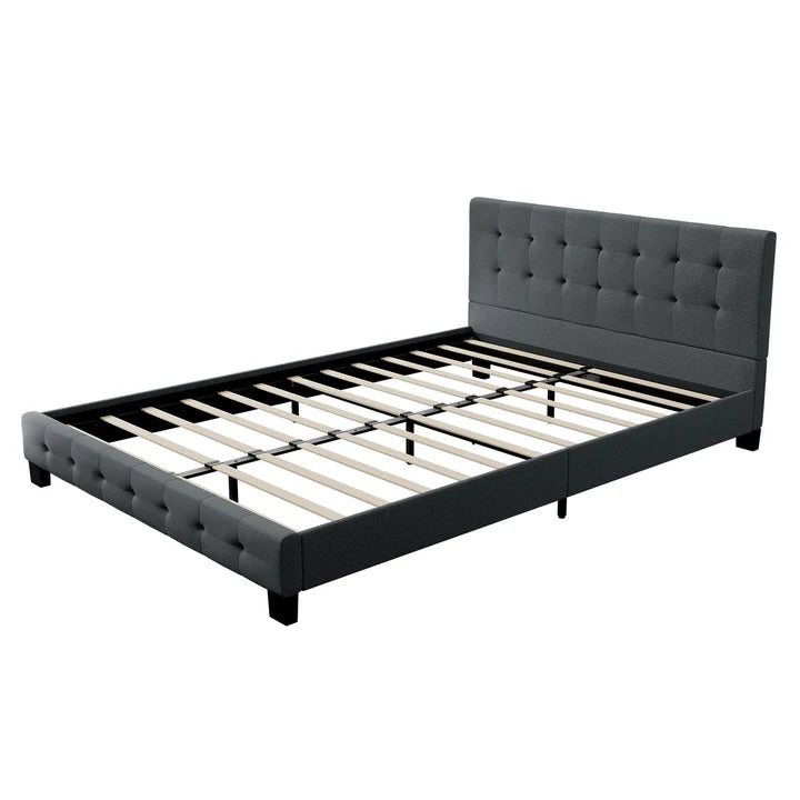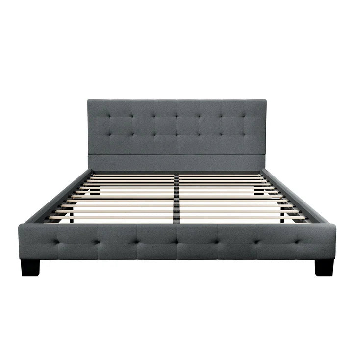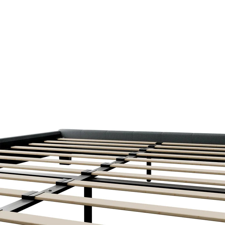 Le sommier à lattes en 24 pièces avec barre centrale stabilisatrice rend le lit extrêmement robuste. De plus, des pieds de support supplémentaires assurent un maintien ferme.Le choix du textile gris améliore non seulement l'apparence du lit, mais rend également le lit rembourré facile à entretenir.