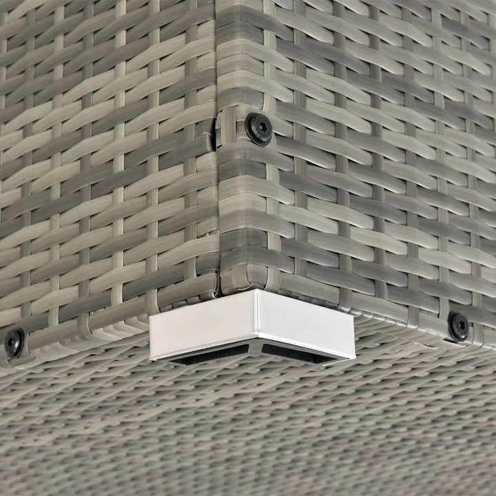 La boîte de rangement impressionne par son design élégant en rotin. Ce matériau est anti-salissures, résistant aux intempéries et aux UV. Idéal donc pour une utilisation en extérieur. Cet organisateur élégant est également facile à entretenir et durable. Grâce à sa forme compacte (grande, carrée), le bac de jardin permet un gain de place.