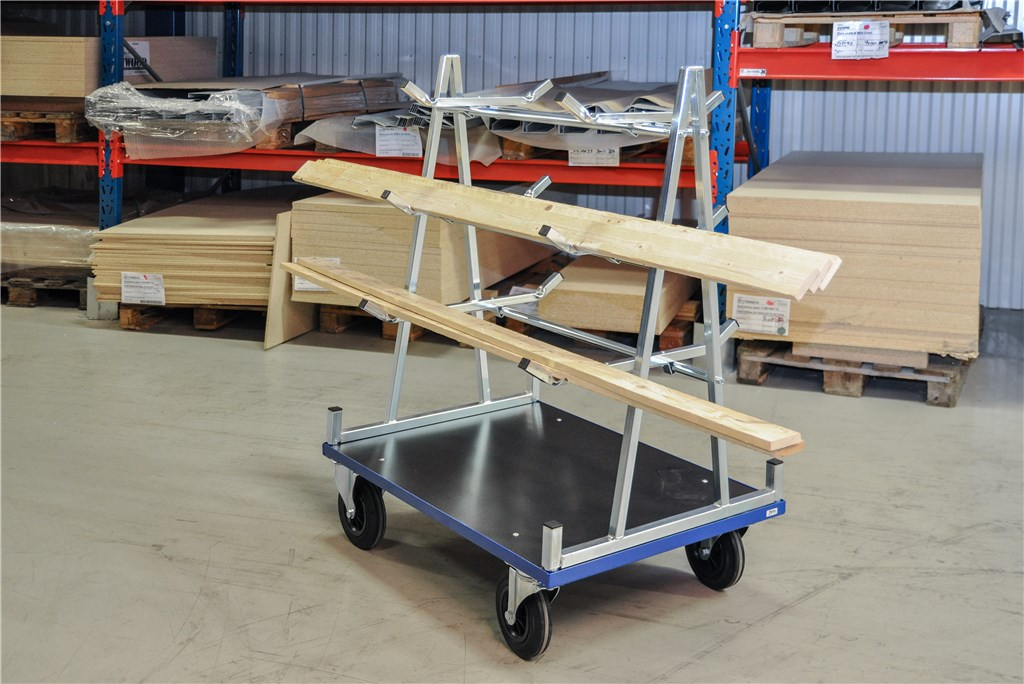 Chariot à panneaux adapté à tous types de panneaux. Roues en caoutchouc stables sur bogies, faciles à déplacer même sur des surfaces différentes.