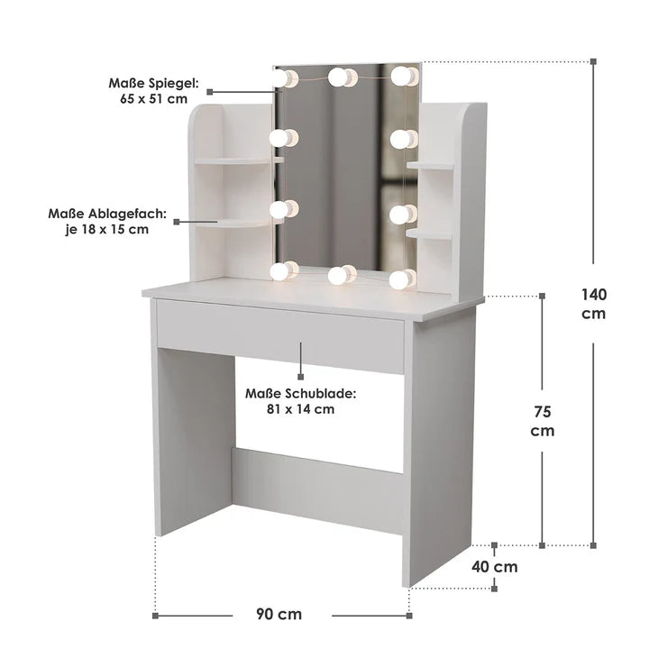 - Schminktisch (LxBxH): 90 x 40 x 140 cm