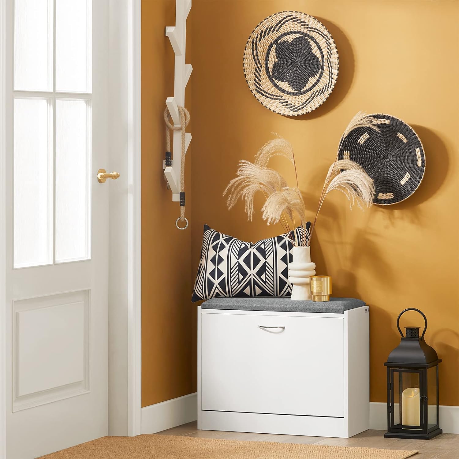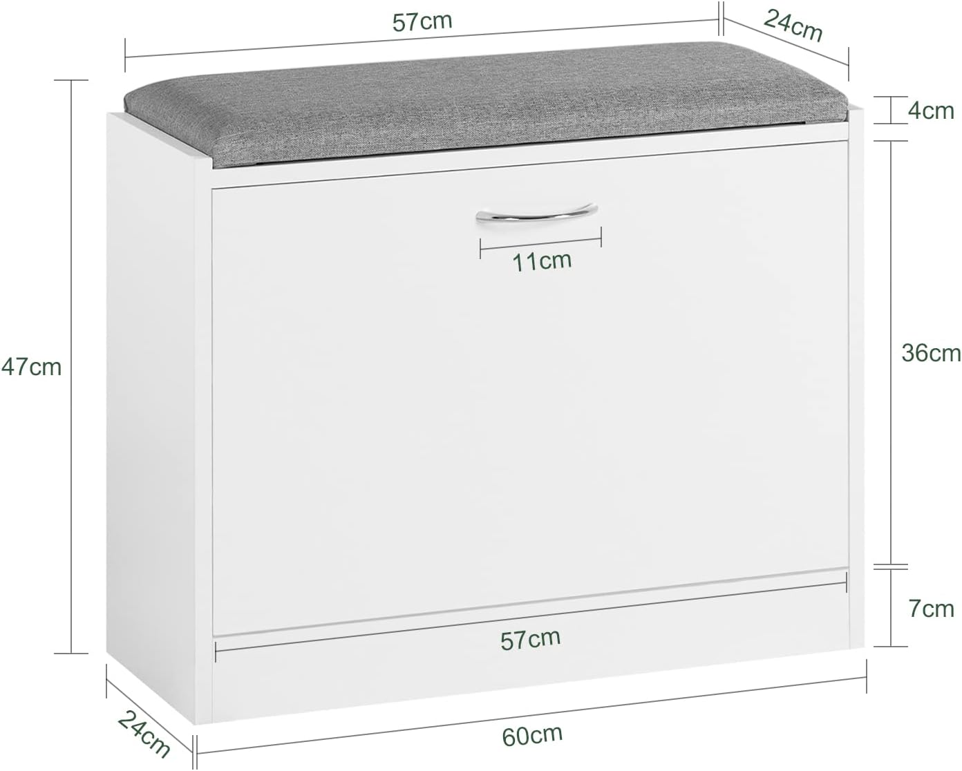- Mit einer Klappe: ideal zum platzsparenden Verstauen Ihrer Schuhe; Dank des Sitzkissens können Sie sich Ihre Schuhe bequem an- und ausziehen.