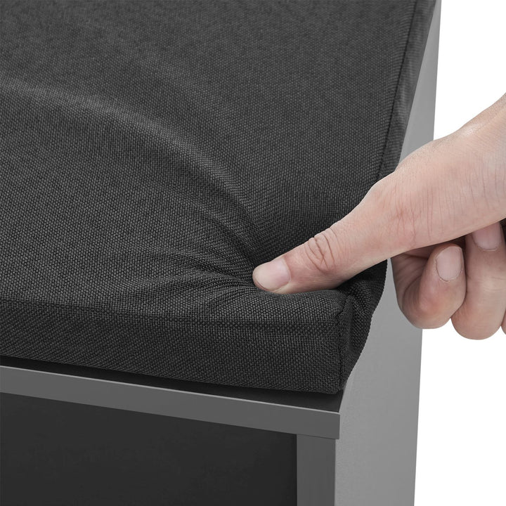 Il y a un coussin de siège rembourré sur le dessus, qui transforme l'armoire en un banc confortable. Le coussin est déhoussable et recouvert de tissu. Grâce au grand confort d'assise, vous pouvez facilement enfiler et enlever vos chaussures ou profiter d'un bon livre devant la fenêtre.