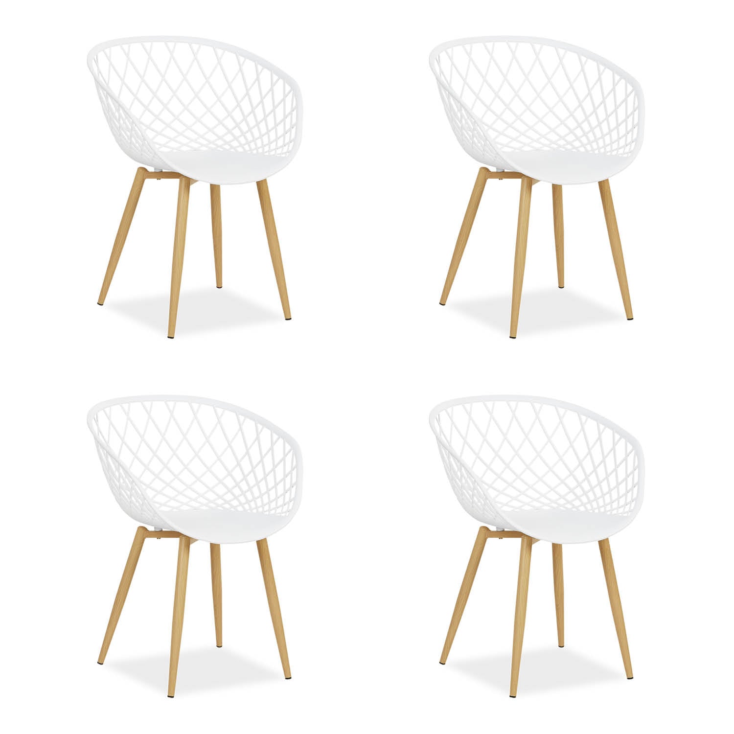 Gartenstuhl mit Armlehnen 4er Set Gartensessel Weiss Balkonstühle