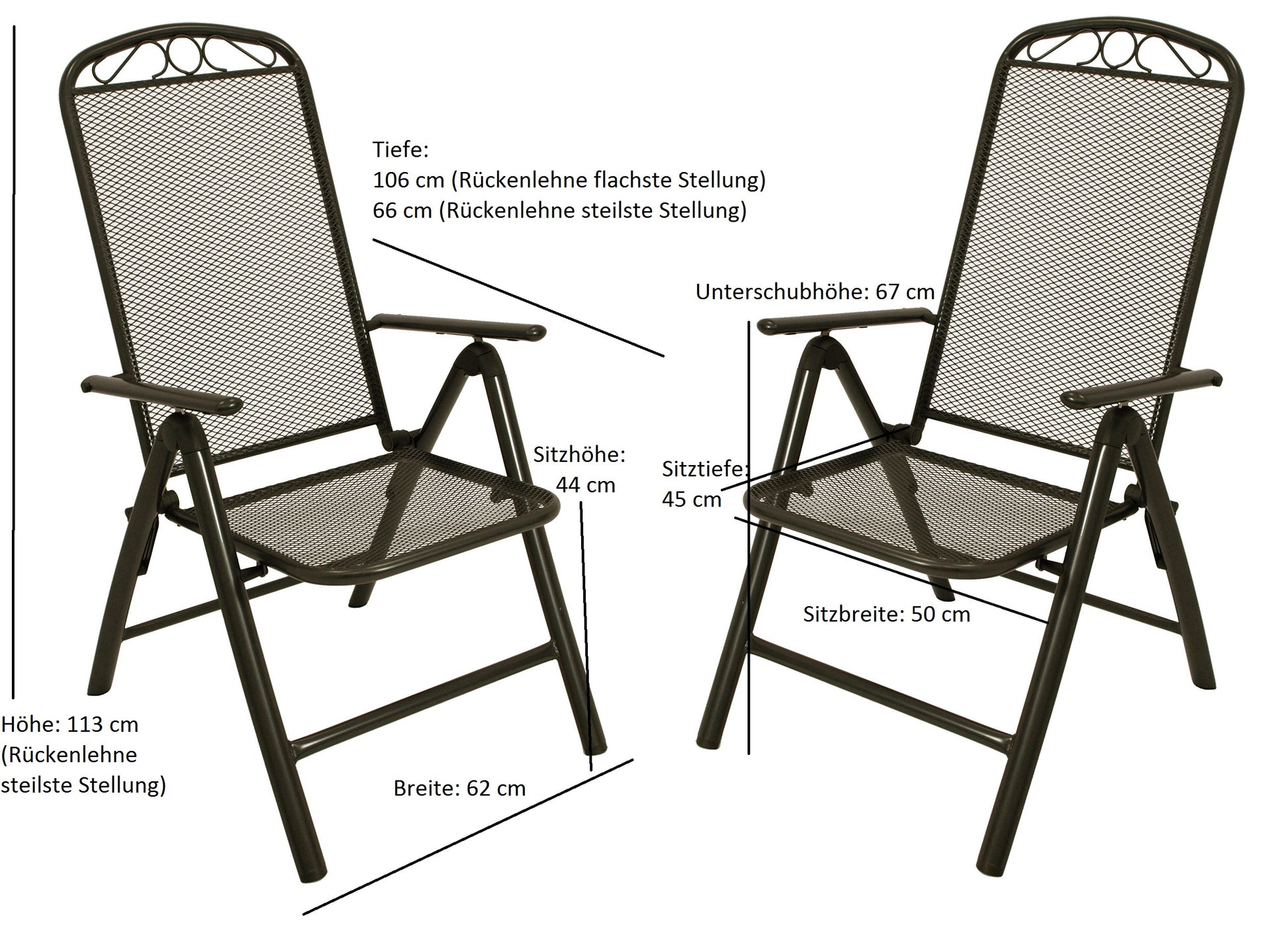 - Profondeur : 66 cm (position la plus inclinée du dossier)