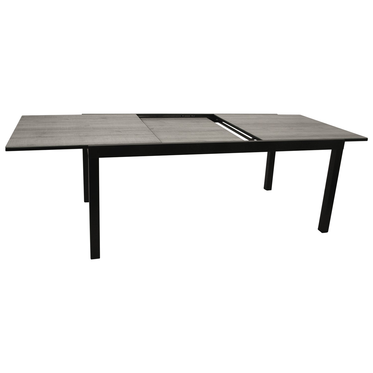 Tavolo allungabile FARO 200/300x110cm, alluminio antracite + vetro effetto ceramica grigio chiaro