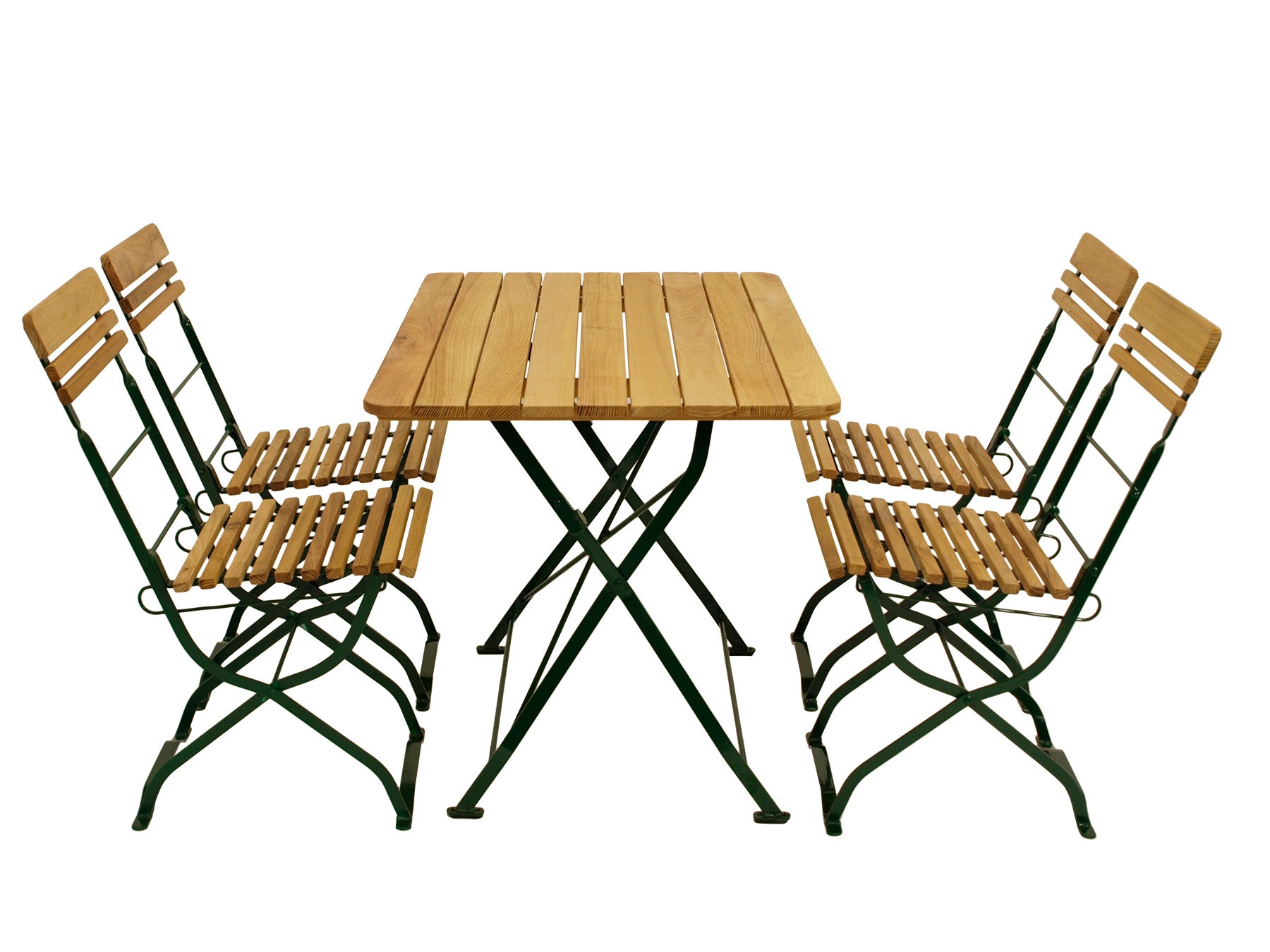 Il design rispecchia quello classico delle birrerie all'aperto con una robusta struttura in metallo. Tutti i legni vengono lavorati in modo pulito. I telai sono realizzati in acciaio massiccio piatto e tondo e verniciati a polvere nel classico verde muschio (RAL 6005).I mobili della serie MUNICH sono molto ben lavorati e non possono essere paragonati ai prodotti dell'Estremo Oriente che hanno caratteristiche estetiche simili. Il legno di robinia utilizzato è estremamente resistente alle intemperie e robusto. A parte una periodica oliatura, non necessita di cure particolari. In combinazione con i robusti telai verniciati a polvere, i mobili sono adatti anche per impieghi gravosi.
