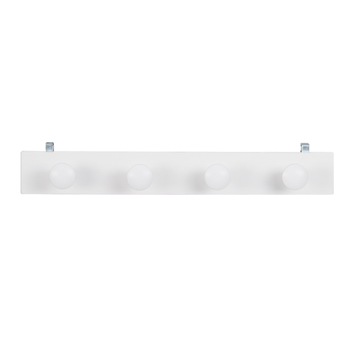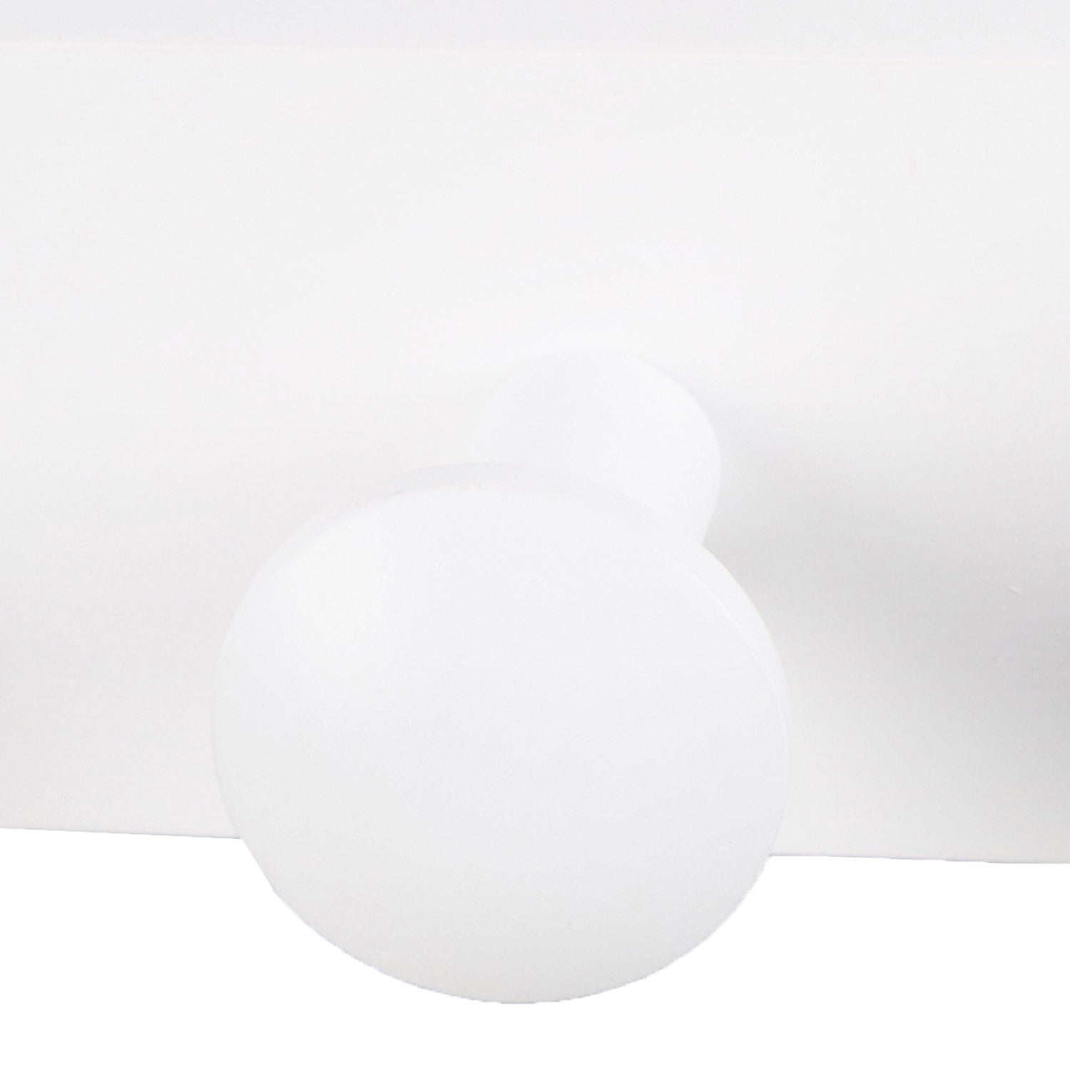 Praktische Kindergarderobe ohne Bohren zum Einhängen für Hochbetten und Etagenbetten passend für alle gängigen Kinderbetten mit einer Materialstärke bis 2,2 cm. Funktionale Kleiderhaken mit 4 runden Haken für mehr Aufhängungsmöglichkeiten im Kinderzimmer. Die aus Kiefernholz gefertigte Kinder Garderobe kann einfach am Kinderbett montiert werden. Kleidungsstücke griffparat und platzsparend aufbewahren - dieses Hakenpaneel in Weiß bietet Kleidung oder Schlafsachen einen nützlichen Aufbewahrungsort. Stabiler Kinder Kleiderhaken, damit nie wieder Sachen auf dem Boden liegen - ideal für kleine Zimmer, die wenig Platz zur Verfügung haben.