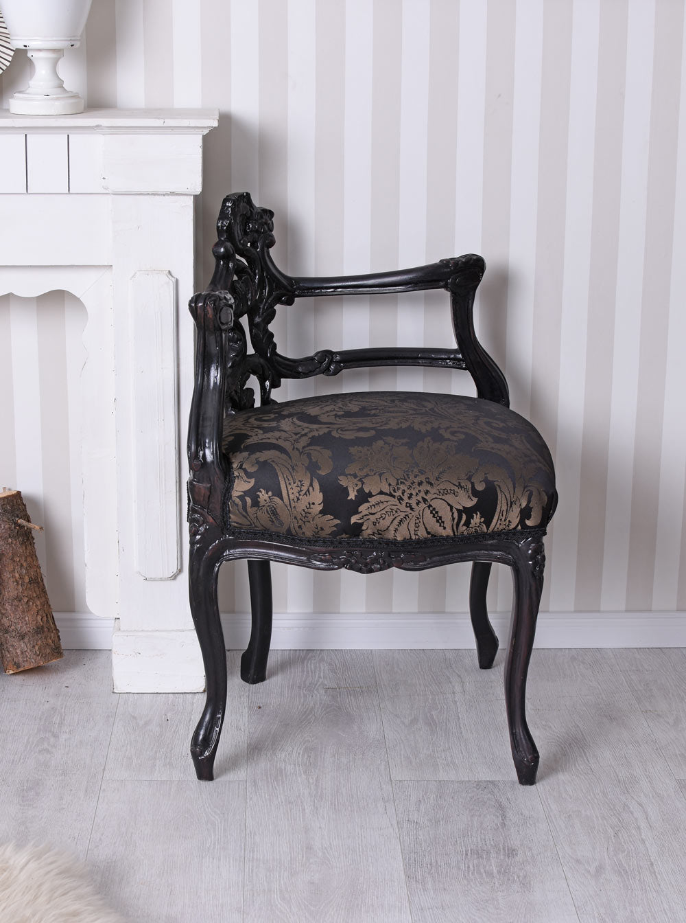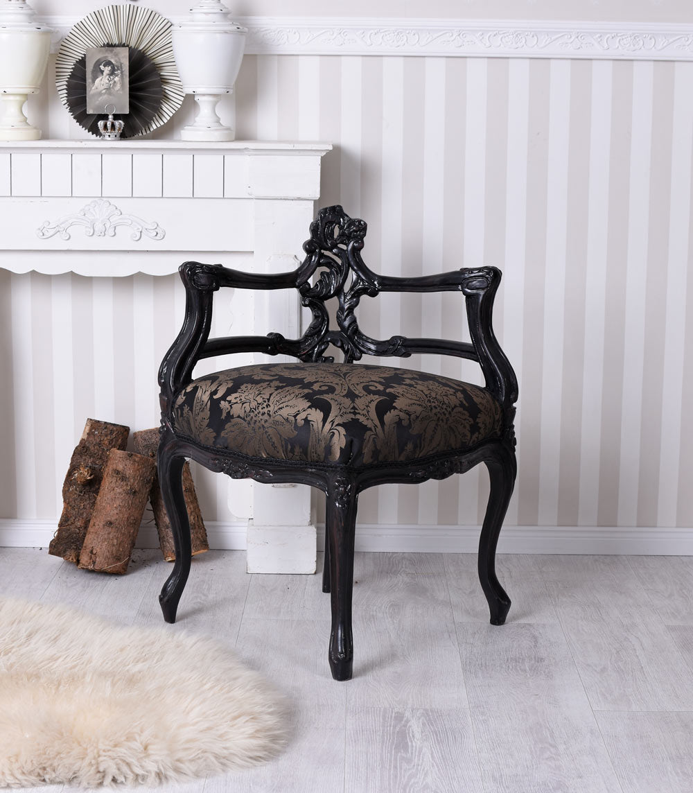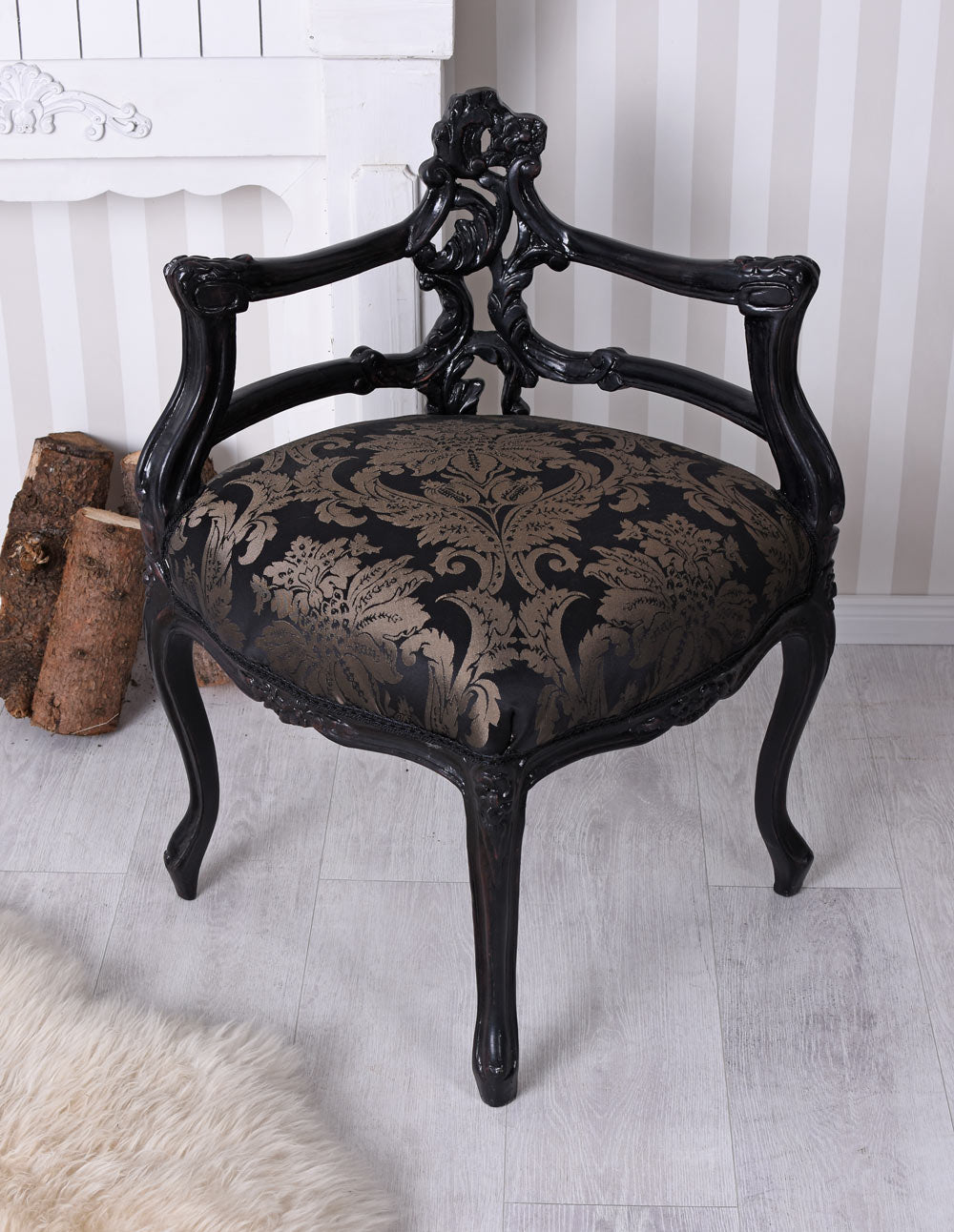 SEDIA ANGOLARE SEDIA BAROCCA POLTRONA SEDIA IMBOTTITA ANTICO NERO ORO