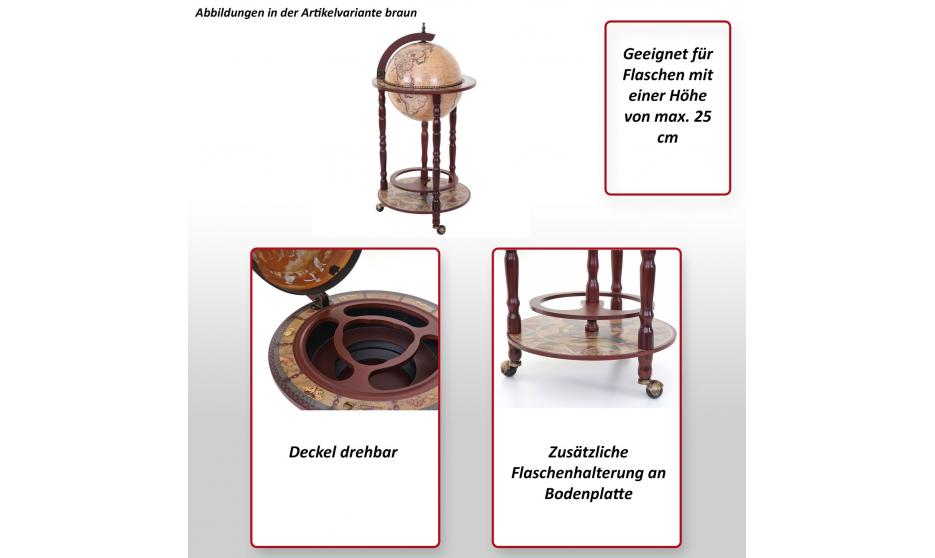- Questo elegante portaoggetti a sfera è ideale per riporre più bottiglie e bicchieri. La combinazione perfetta tra estetica e capienza: con i suoi bellissimi dipinti, questo mappamondo bar è una vera e propria attrazione.