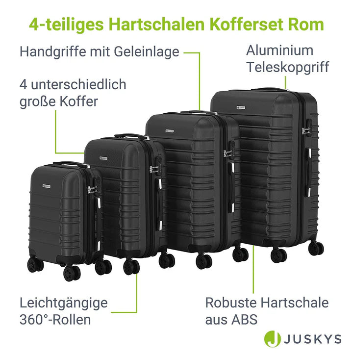 Set valigie rigide Roma - Nero Set da 4 pezzi con scocca rigida in ABS antiurto e ruote a 360°