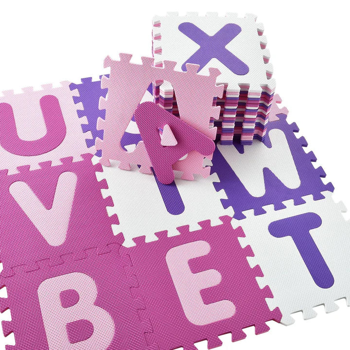 Il tappeto puzzle per bambini Juna da 36 pezzi, realizzato in resistente schiuma EVA, è l'aggiunta perfetta alla cameretta di ogni bambino. I colori rosa, viola e bianco rendono il tappetino da gioco antiscivolo ideale per le bambine dai 3 anni in su. Con i 26 tappetini con le lettere e 10 con i numeri, tua figlia imparerà a gestire le lettere e i numeri in modo giocoso. In pochissimo tempo vengono creati non solo parole e numeri, ma anche cubi, case e altre forme. Giocare con il tappetino isolante dal freddo stimola inoltre l'immaginazione, la percezione, l'equilibrio e il senso del tatto. Attraverso l'educazione prescolare, pedagogicamente preziosa, prepari la tua bambina per la scuola e poni le basi per una carriera scolastica di successo. Allo stesso tempo, è possibile utilizzare il tappetino anche come tappetino per gattonare e per camminare.
