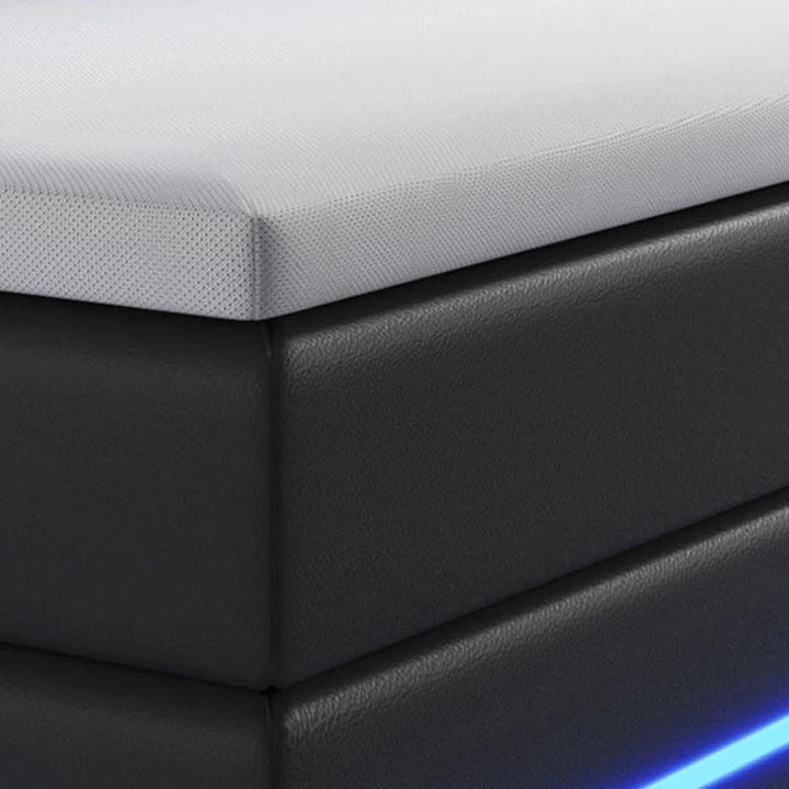 Il meraviglioso letto Norfolk box spring (120x200 cm, nero) con materasso a molle extra spesso e morbido topper vi offre un comfort assoluto durante il sonno. Dopo una notte trascorsa dormendo a strati, ti sentirai leggero come una piuma e ben riposato. Anche appoggiandosi alla testiera comodamente imbottita mentre si legge o si guarda la TV, si ricaricano le batterie e si protegge la schiena. L'illuminazione a LED immerge la vostra camera da letto in una luce piacevole e rilassante. Grazie alla sua comoda altezza di 66 cm, il letto è ideale per adulti e anziani.