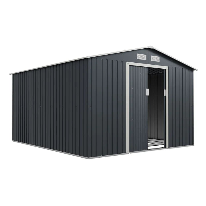 Con una superficie interna di 267 × 309 × 187 cm, il capanno degli attrezzi in metallo offre molto spazio per riporre tosaerba, scarificatori, fertilizzanti, sedie, biciclette o pneumatici per auto. Pioggia, neve, rugiada e spruzzi d'acqua non possono danneggiare i tuoi utensili da giardino, così come foglie, sporcizia o escrementi di uccelli. Gli oggetti immagazzinati sono ben protetti dalla ruggine, dalla muffa e dalla decomposizione del materiale. I tuoi mobili da giardino saranno ben protetti dai raggi UV intensi, quindi non perderanno il loro colore così rapidamente e sembreranno nuovi più a lungo. Con ripiani aggiuntivi, contenitori e carrelli puoi anche creare ordine, così da trovare rapidamente tutto quando ti serve.