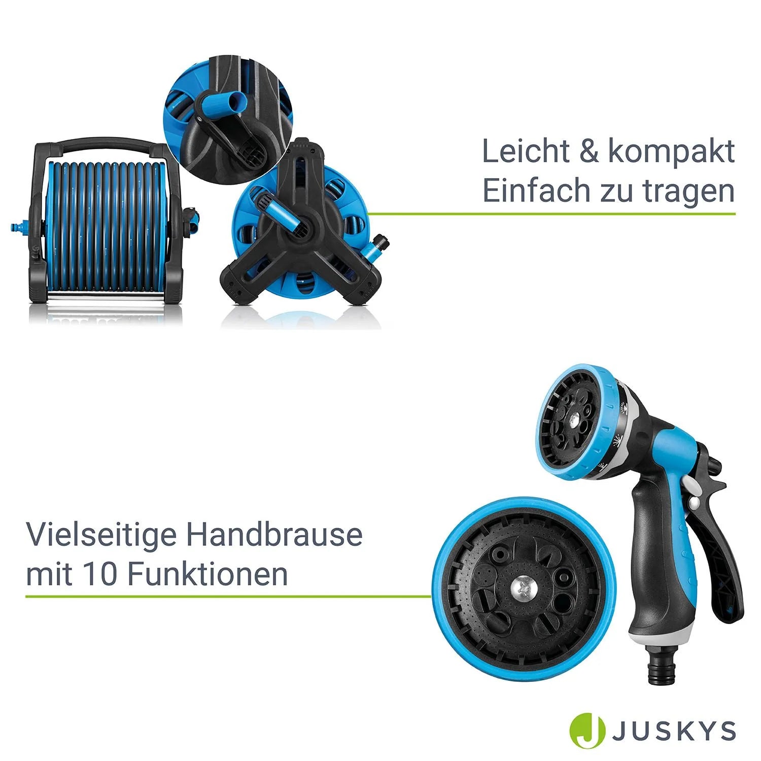 Grazie all'avvolgitubo mobile Basic con tubo dell'acqua da 30 m, puoi annaffiare tutte le piante del tuo giardino facilmente e senza problemi. Il tubo flessibile extra lungo offre una portata e una flessibilità enormi. Grazie alle 10 funzioni della doccia multifunzione, puoi adattare in un attimo il getto d'acqua alle esigenze di ogni pianta. Da un getto forte a una pioggerellina leggera, tutto è possibile. Dotato di un ingresso lungo 2 m e di diversi adattatori, è possibile collegare il tubo in modo rapido e semplice a qualsiasi rubinetto da giardino.