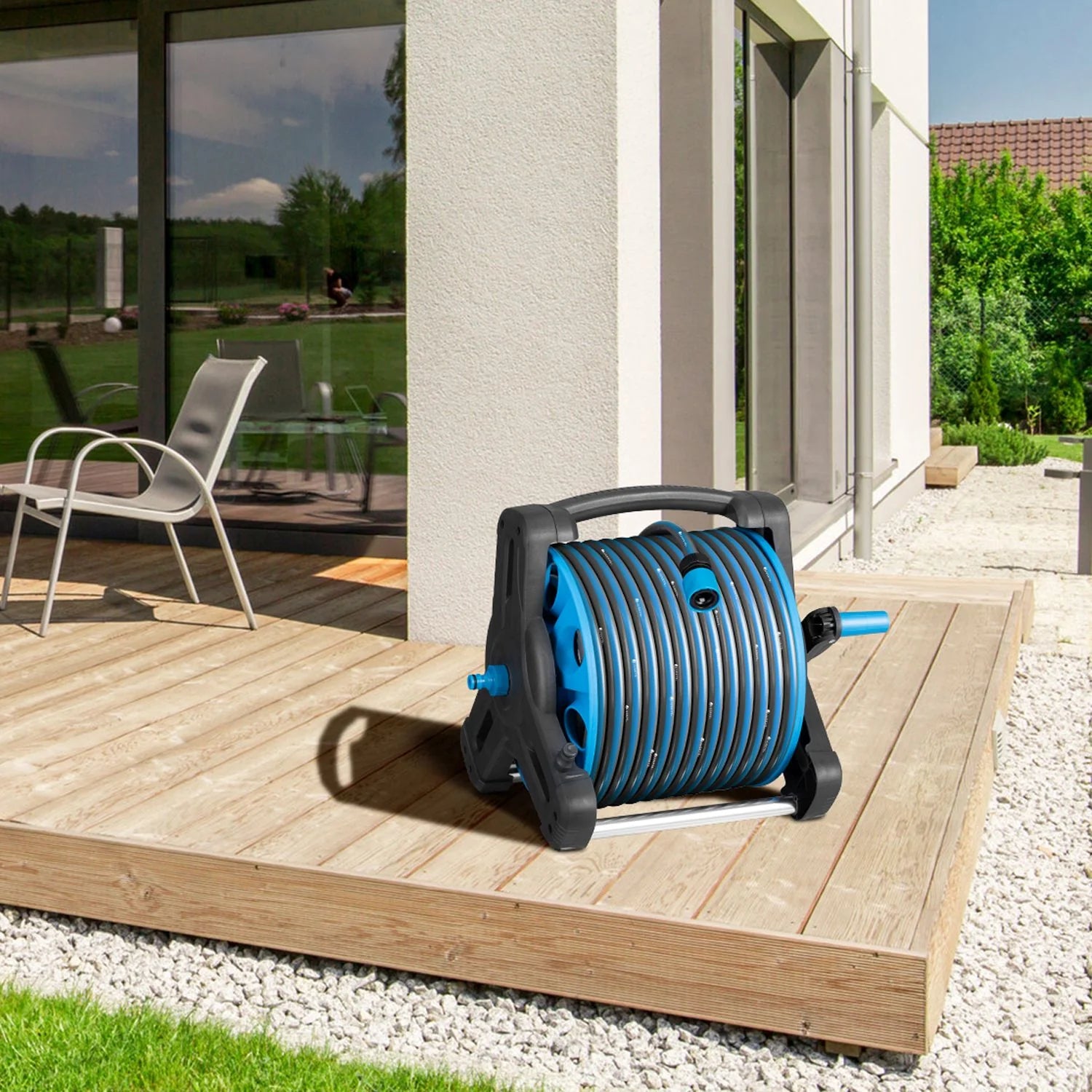 Avvolgitubo portatile con tubo dell'acqua da 30 m per tutto il giardino