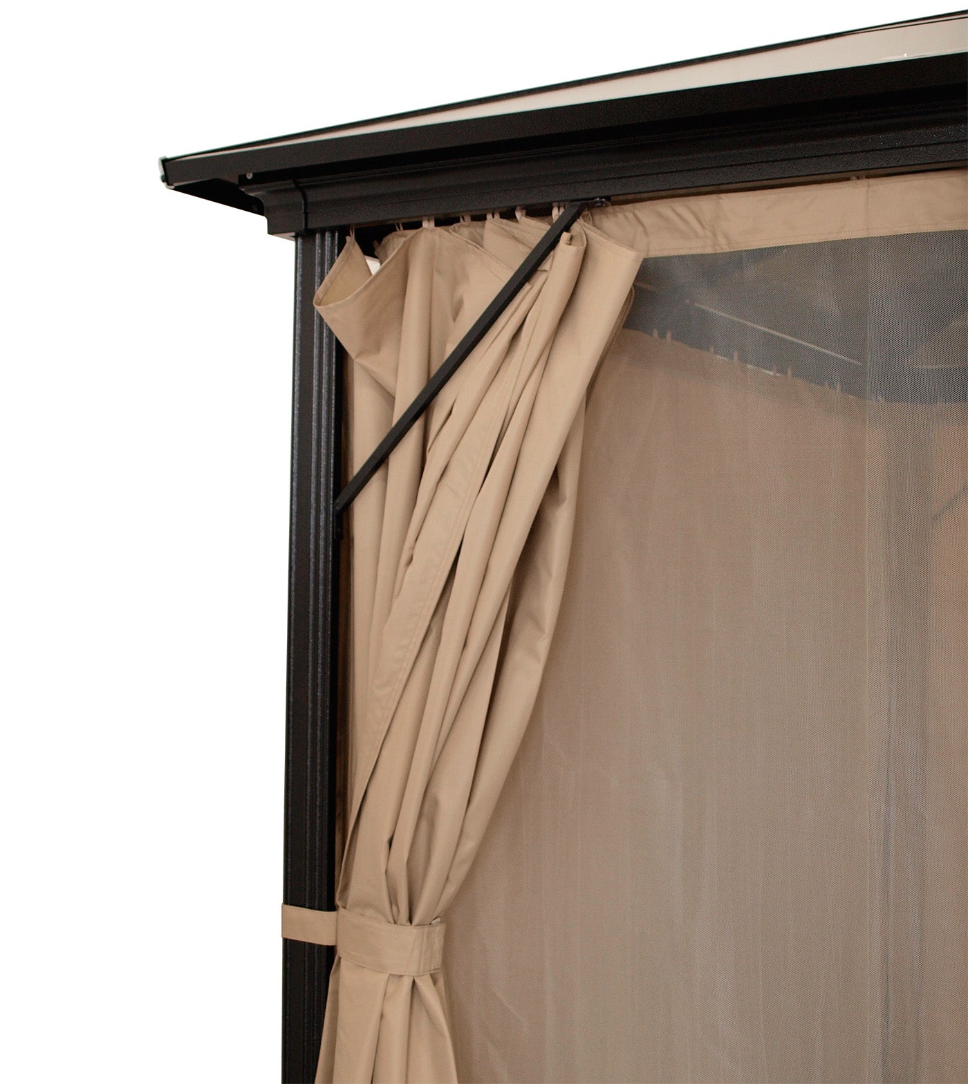 I pannelli laterali possono essere aperti verso il centro e fissati singolarmente ai montanti angolari. È integrata una zanzariera, così i pannelli laterali possono essere chiusi completamente oppure solo le reti. Colore dei pannelli laterali: beige.