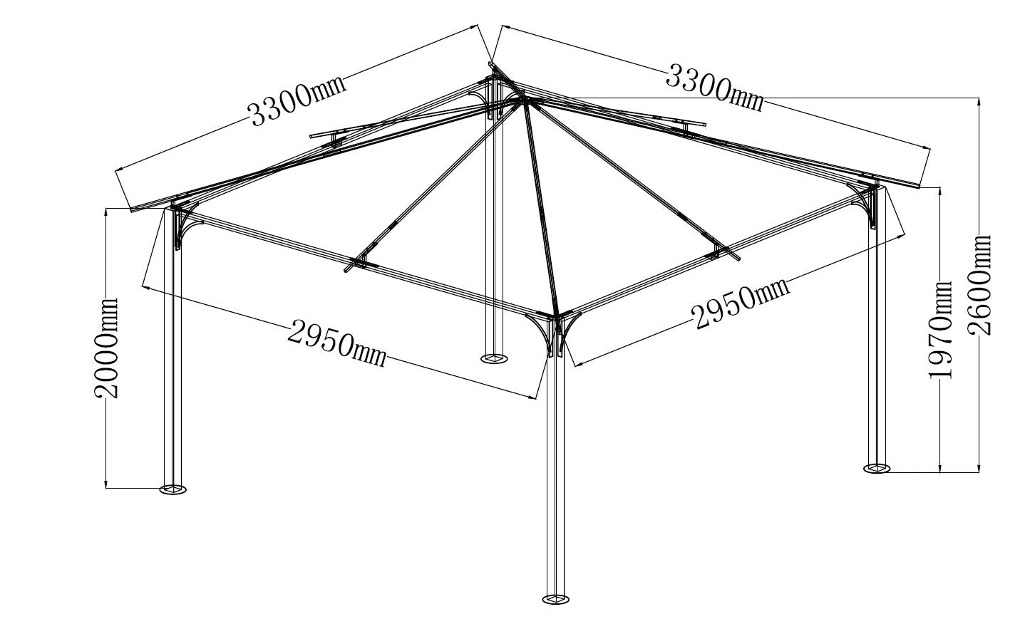 Padiglione VENEZIA 3x3 metri, acciaio nero, telo PVC spalmato écru