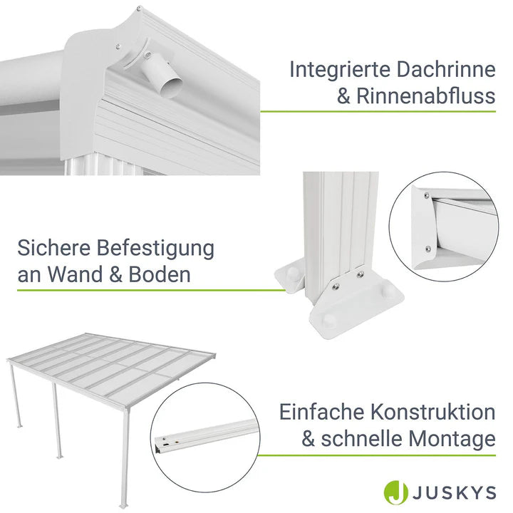Cercate una protezione solare moderna, stabile e di alta qualità? Il tetto per patio in alluminio Borneo (bianco) da 4,9 × 3 m è il tetto perfetto per il tuo patio. Grazie alla robusta struttura in metallo e all'aspetto elegante, il tetto funge da elegante riparo per molti anni. Sia sotto il sole cocente che sotto la pioggia battente, il tetto del patio vi protegge dalla pioggia e dai dannosi raggi UV. In questo modo potrete trascorrere il vostro tempo libero all'aria aperta in tutta tranquillità. Perché con un tetto affidabile sei ben protetto! Allo stesso tempo protegge i vostri amati mobili da giardino dalle intemperie.