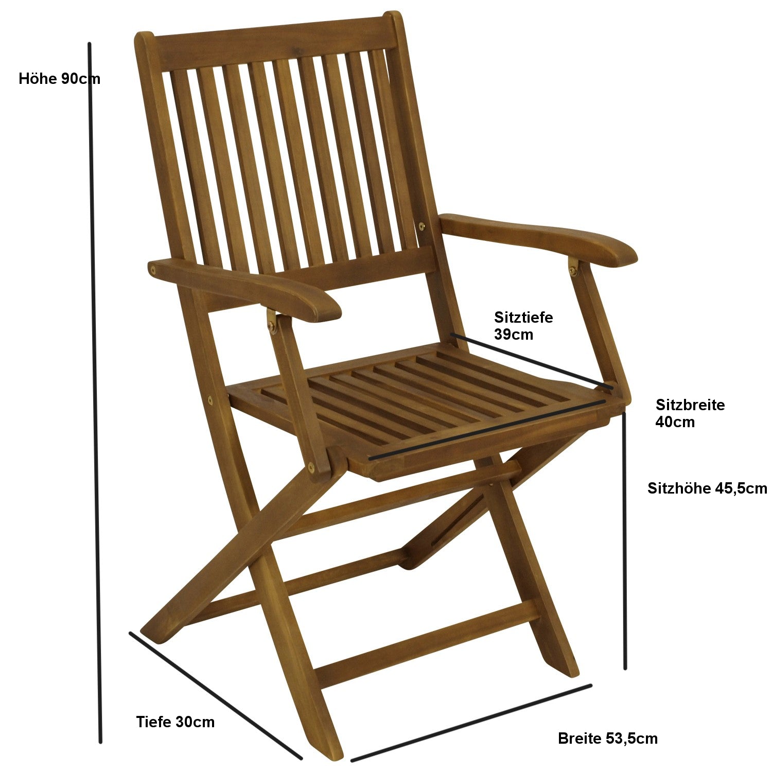 2-er Set Klappstuhl mit Armlehnen BENITA, Akazie geölt