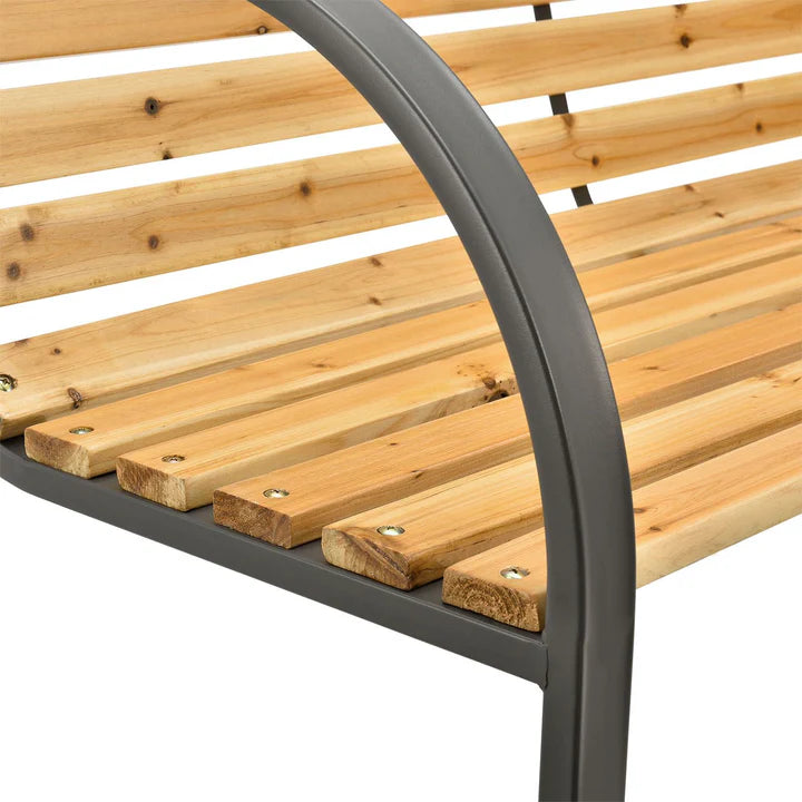 Dank dem 18mm starken Holz und dem robusten Metall-Gestell hält die Parkbank draußen Wind und Wetter stand. Eine Lackierung schützt das Holz vor äußeren Einflüssen, wie Regen und Witterung. Die Beine werden durch Verbindungsstreben mit der Sitzfläche verbunden, was für zusätzliche Stabilität und Standfestigkeit sorgt.
