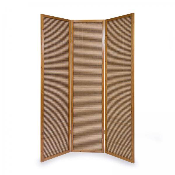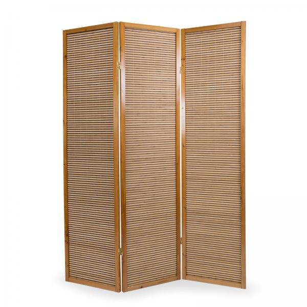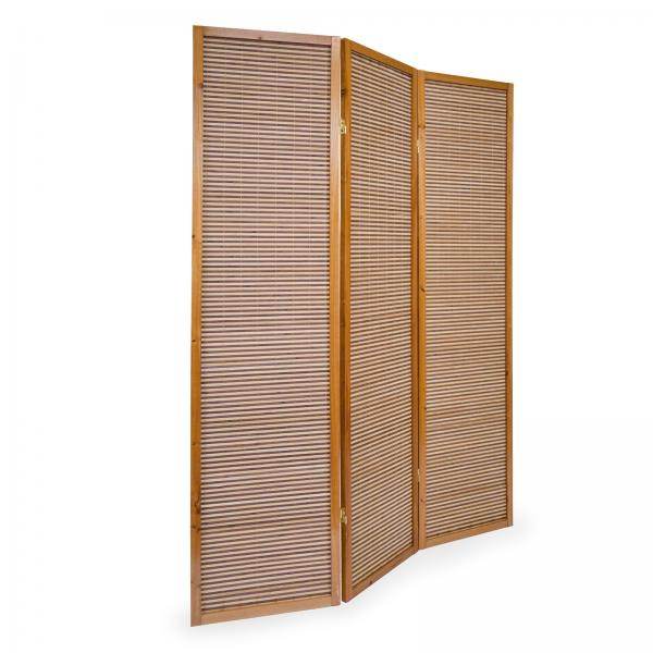 3 fach Holz Paravent Raumteiler hellbraun Bambus