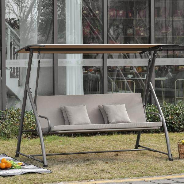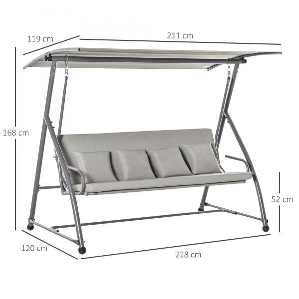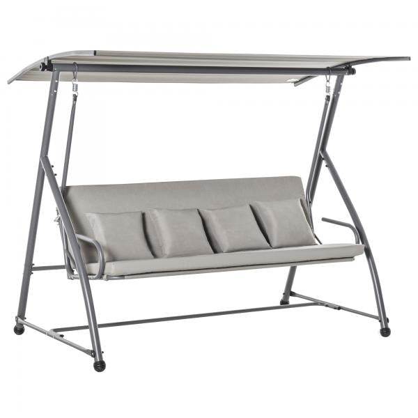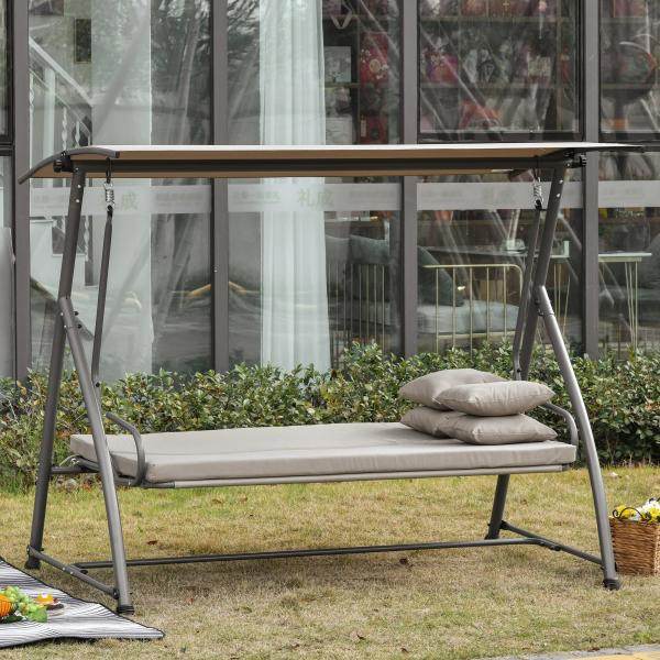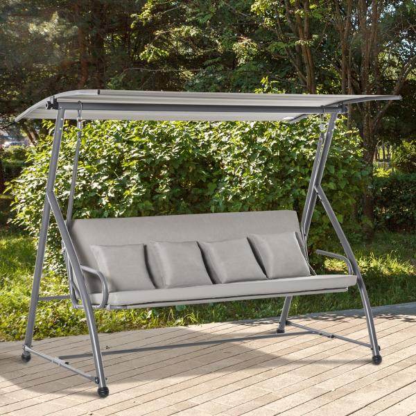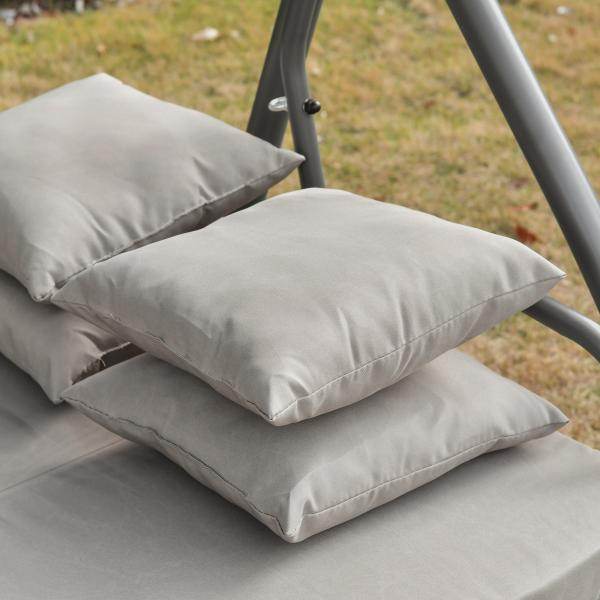 Mit dieser Gartenschaukel für Erwachsene von Outsunny kann der Sommer kommen. Diese 2-in-1 Schaukel lässt sich ganz einfach in eine große Liege verwandeln. Die großzügige Polsterung und zusätzliche Kissen sorgen für viel Sitzkomfort. Robuste Federn und ein stabiles Metallgestell ermöglichen ein sanftes Schaukeln und bieten eine hohe Stabilität. Das integrierte Dach schützt sie zudem vor heißer Sonne und schädlichen UV-Strahlen. Genießen Sie den Sommer in vollen Zügen mit dieser 3-Sitzer Hollywoodschaukel von Outsunny.
